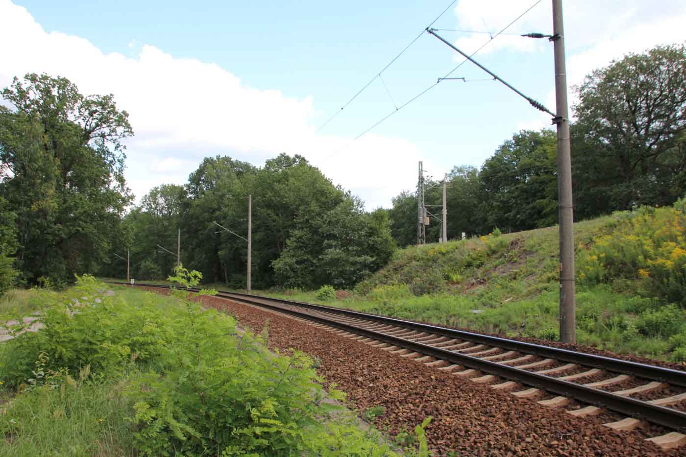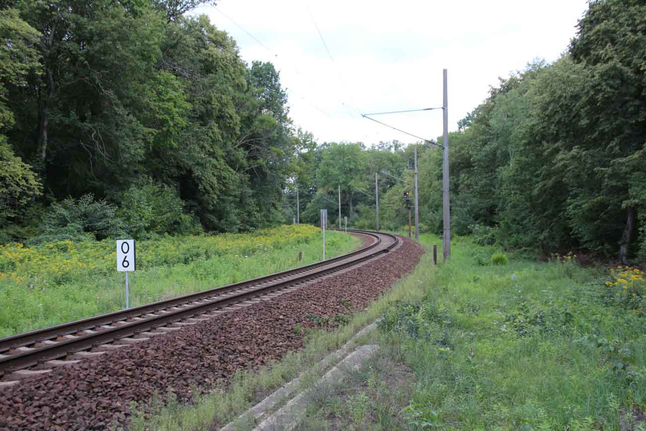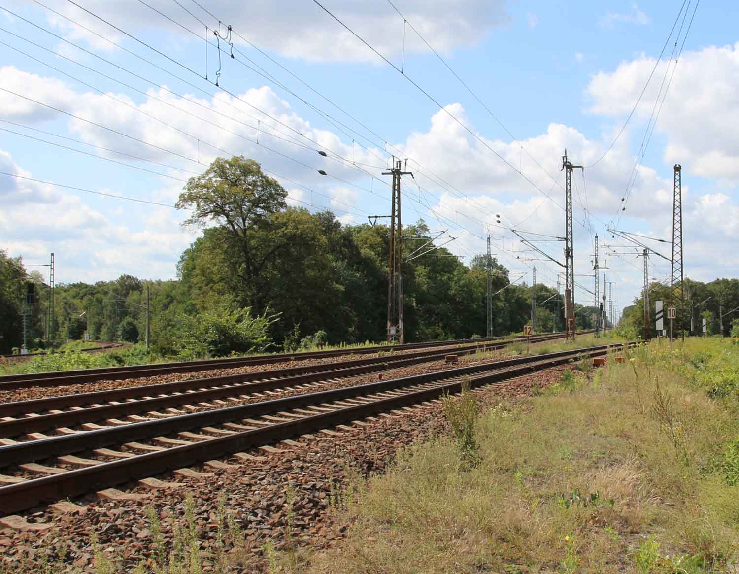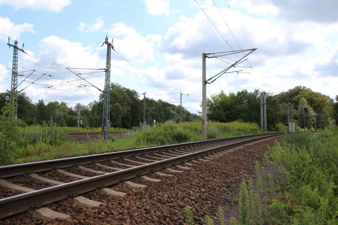 - Blick entgegen der Richtung der Kilometrierung Rechts oben der Berliner Aussenring (BAR) Foto: Julius Pintsch, August 2019