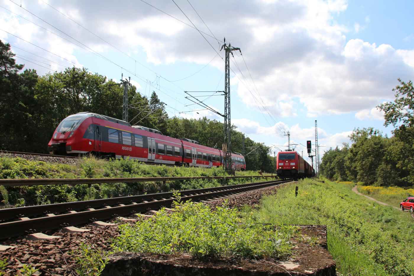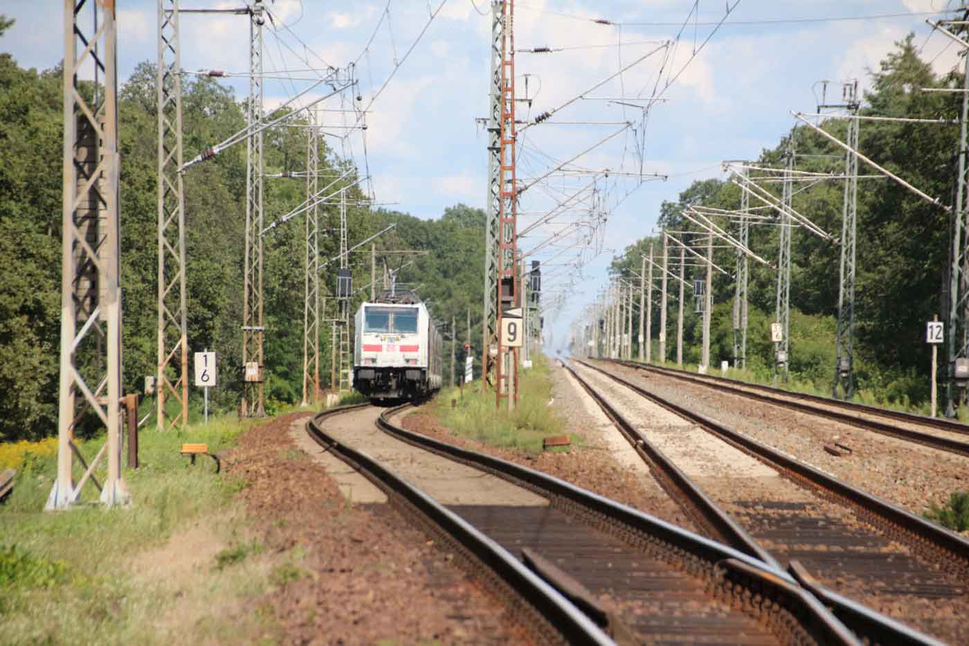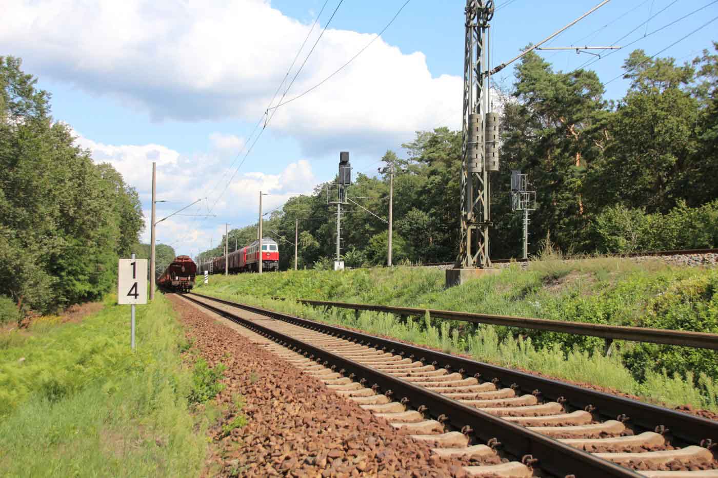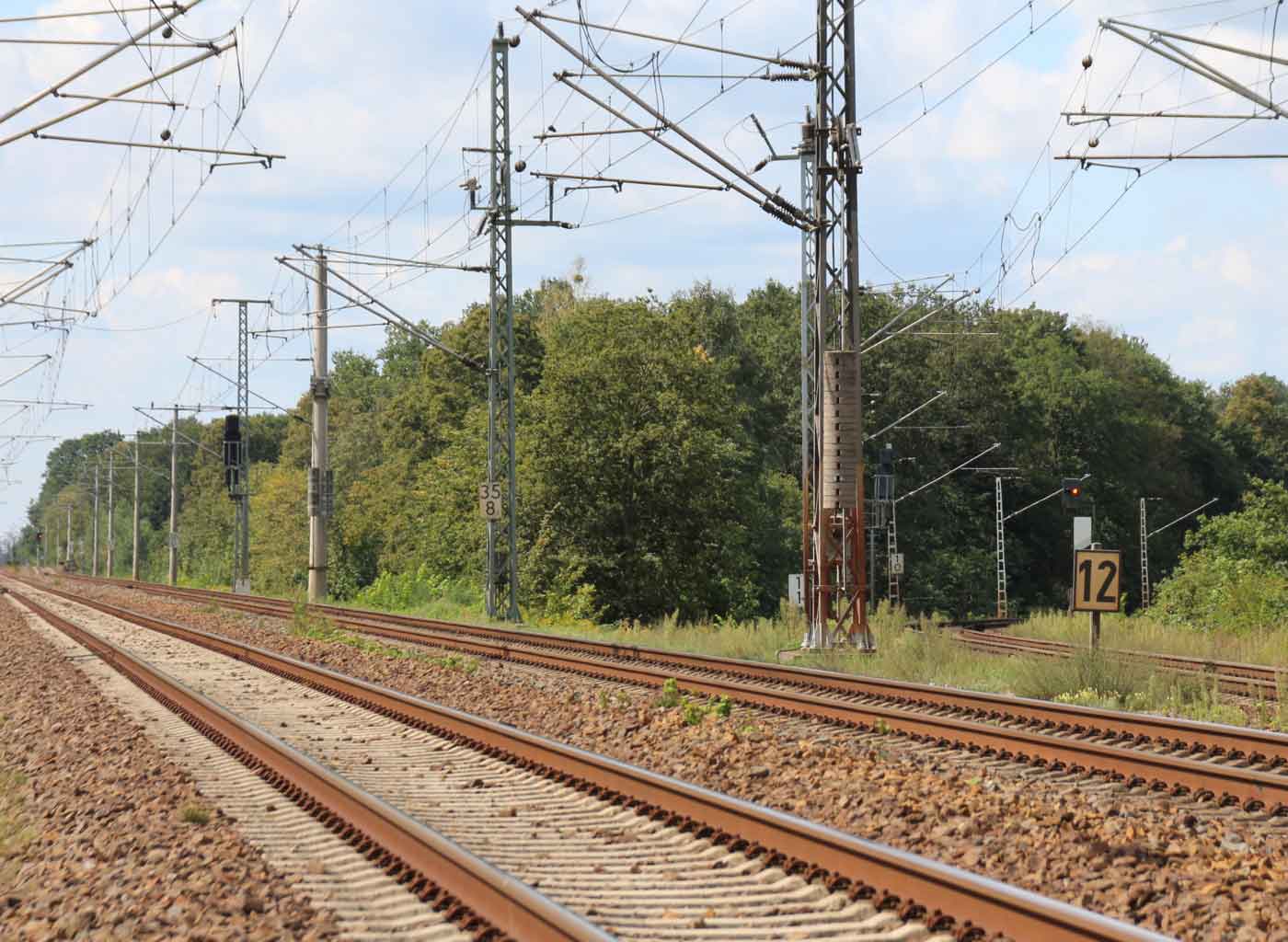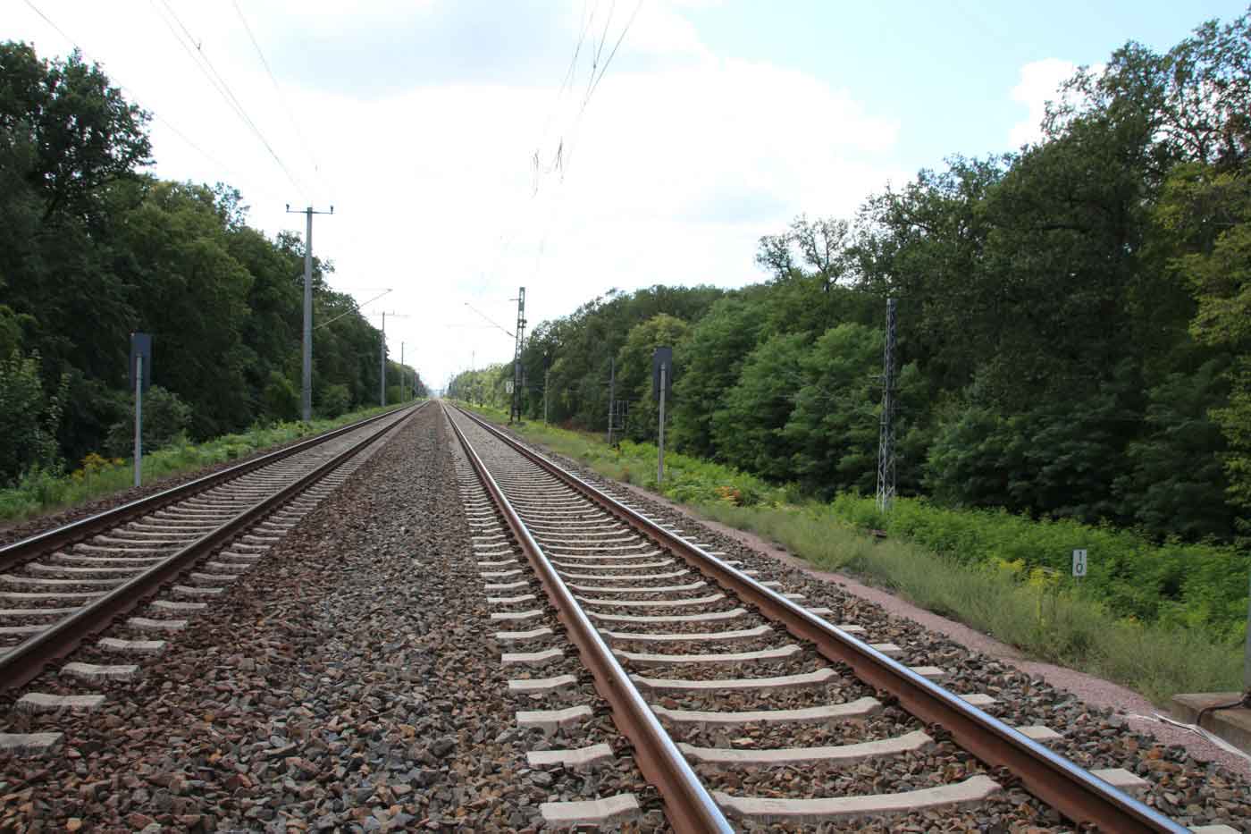 - Blick entgegen der Richtung der Kilometrierung Rechts oben der Berliner Aussenring (BAR) Foto: Julius Pintsch, August 2019