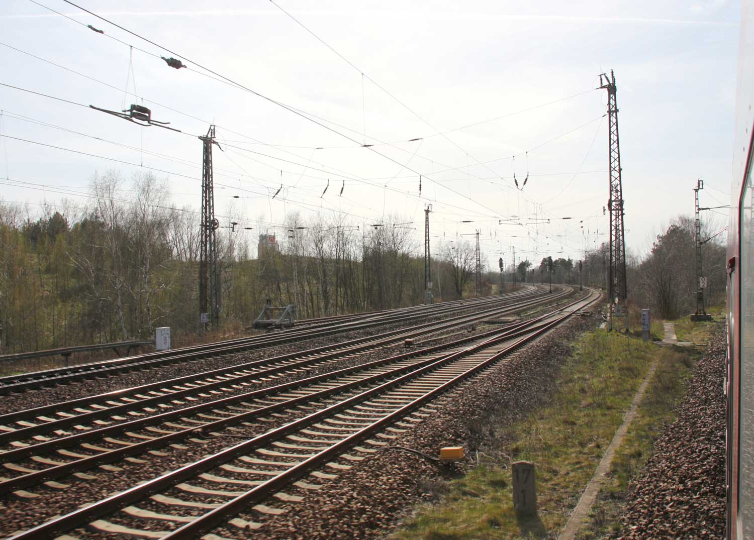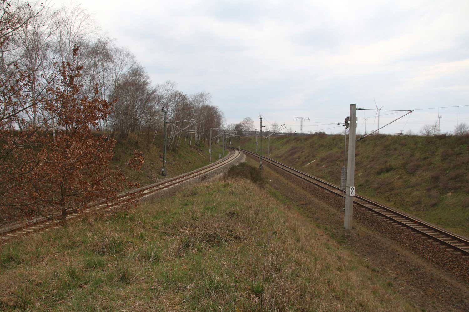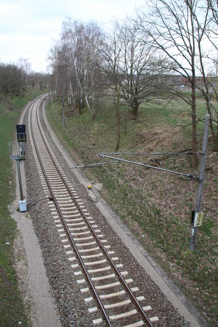 Rechts die Anhalter Bahn Richtung Halle (Saale)