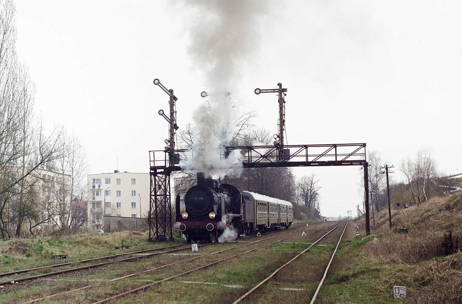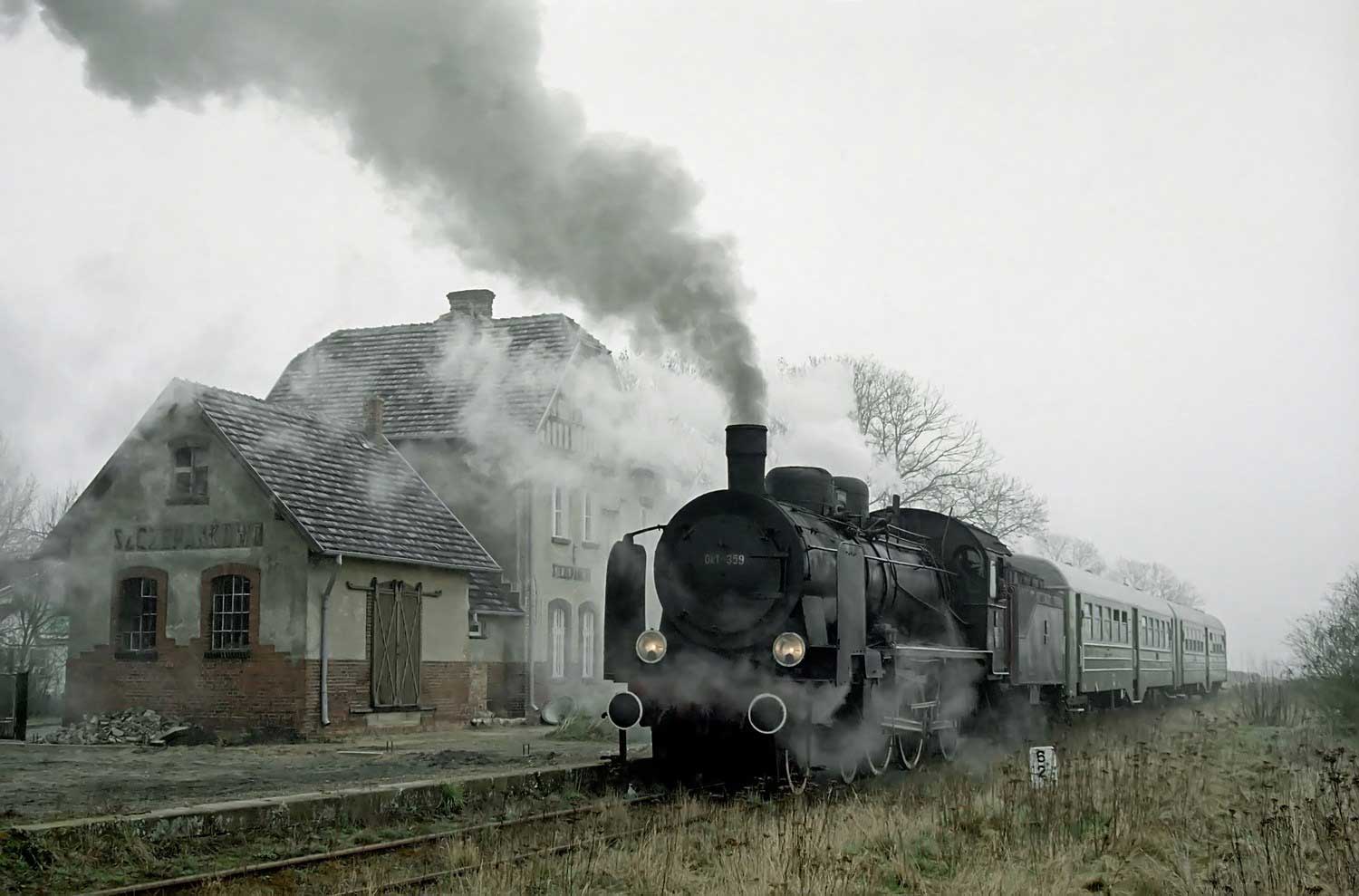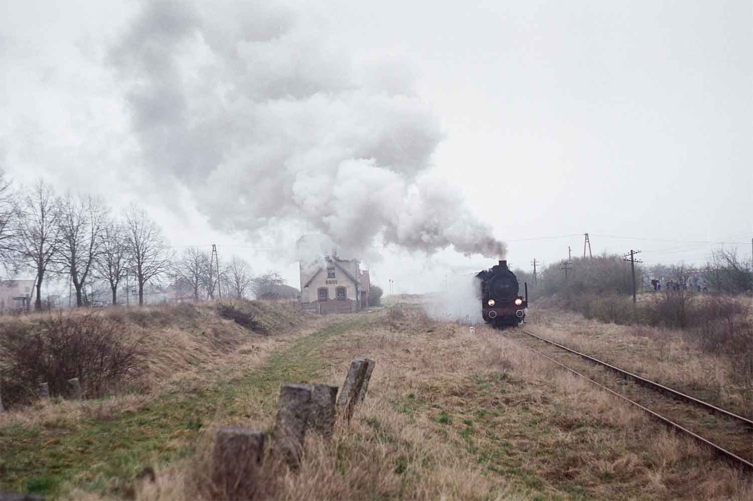 Samter 0,0 km 33,046 der Strecke Posen (Warthel) Hbf 0,0 - Rokstätt 17,746 - Samter 33,046 - Dratzigmühle 78,012 - Rbd Grenze Posen/Osten km 79,600 = km 244,101 - Kreuz 248,23 - Arnswalde 303,24 - Rbd Grenze Osten/Stettin 335,99 - Stargard (Pom) 337,80