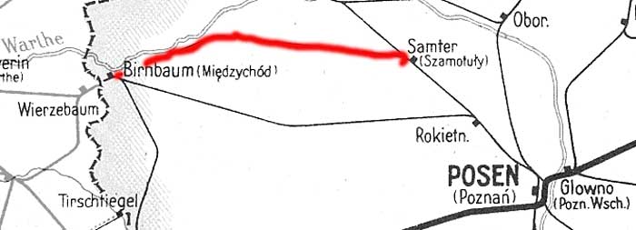Rokietnica (Rokstätt) 0,0 - Międzychód (Birnbaum) 63,223 - Wierzbno (Wierzebaum) 71,502 - Skwierzyna [Schwerin (Warthe)] 92,635