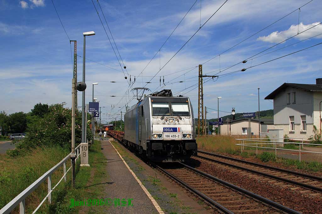 155 189 schleppt einen liegengebliebenen Güterzug mit einer 140 ab