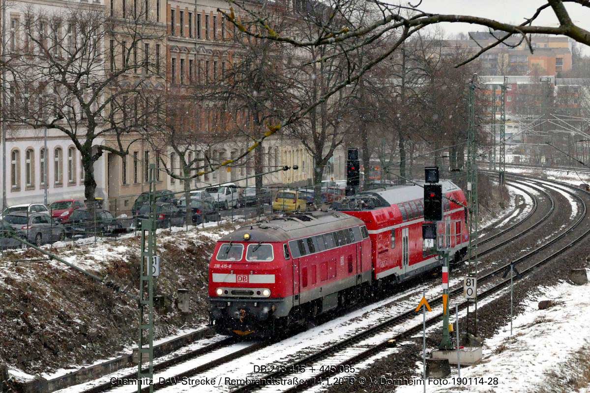 km 81,0 (2 Tafeln und Stein) zwischen Chemnitz Hbf und Chemnitz Süd - 218 415 und 445 085
