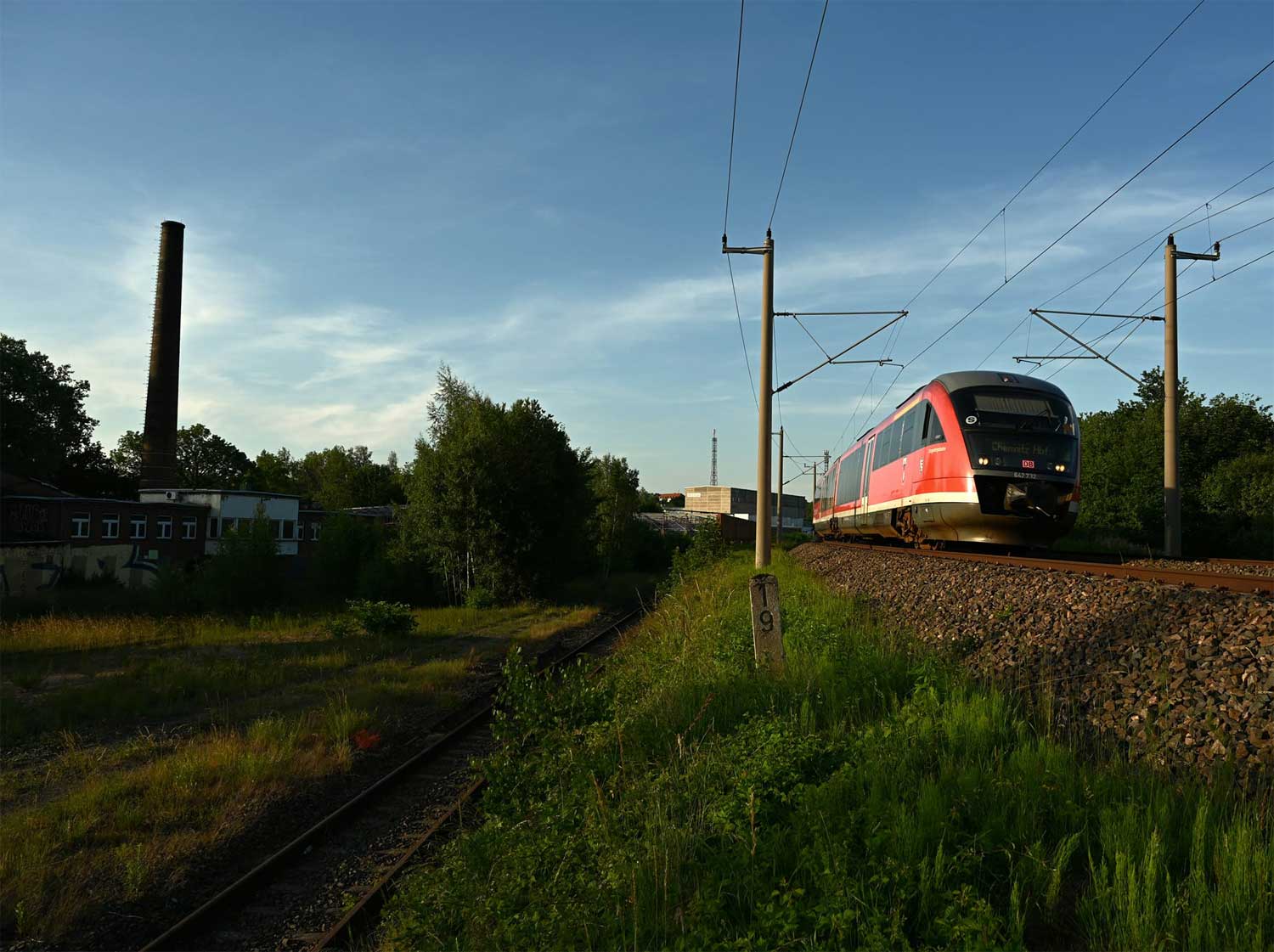 km 85,2 in Chemnitz-Schönau (früher: Wanderer Werke) - Blick Richtung Dresden