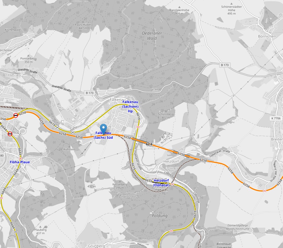 Flöha | 67,37 | km 43,50 der Strecke Annaberg-Buchholz unt. Bf 0,30 - Flöha 43,50 (AF) |