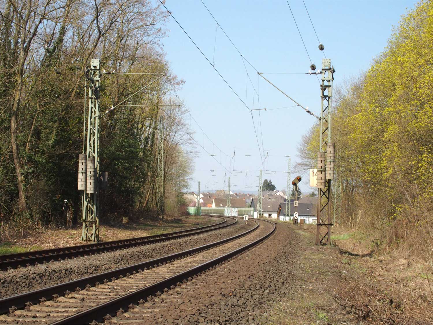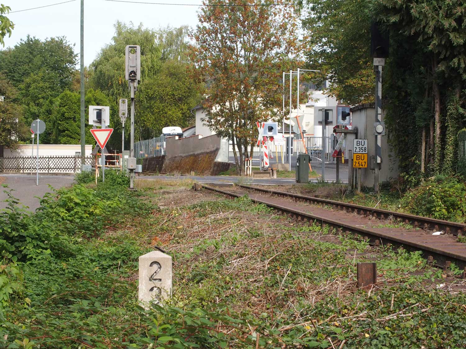 BÜ km 1,938 zwischen Engers und Bendorf-Sayn - Blick Richtung Au (Sieg)