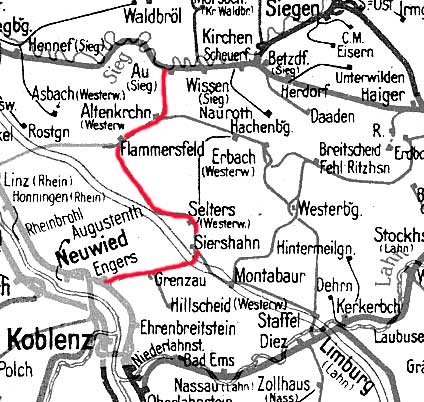 Selters (Westerw) 27,70 km 0,0 der Strecke Selters (Westerw) 0,0 - Hachenburg 23,4 (Kleinbahn Selters-Hachenburg) Spurweite 1000 mm