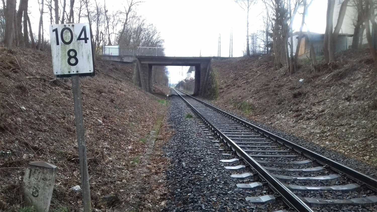 km 104,8 (Stein und Tafel) in Fulda - Blick Richtung Fulda