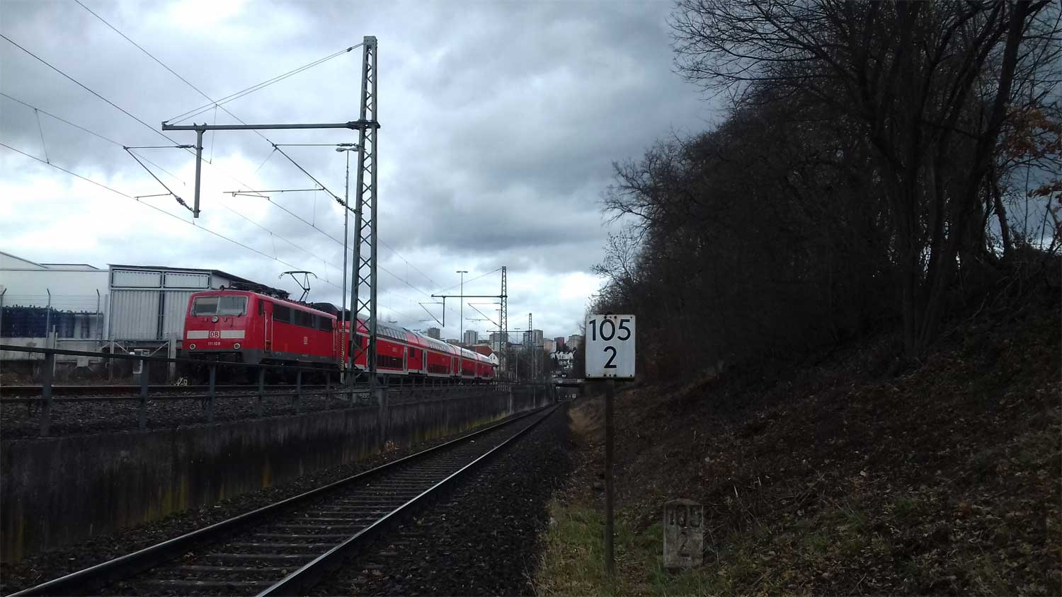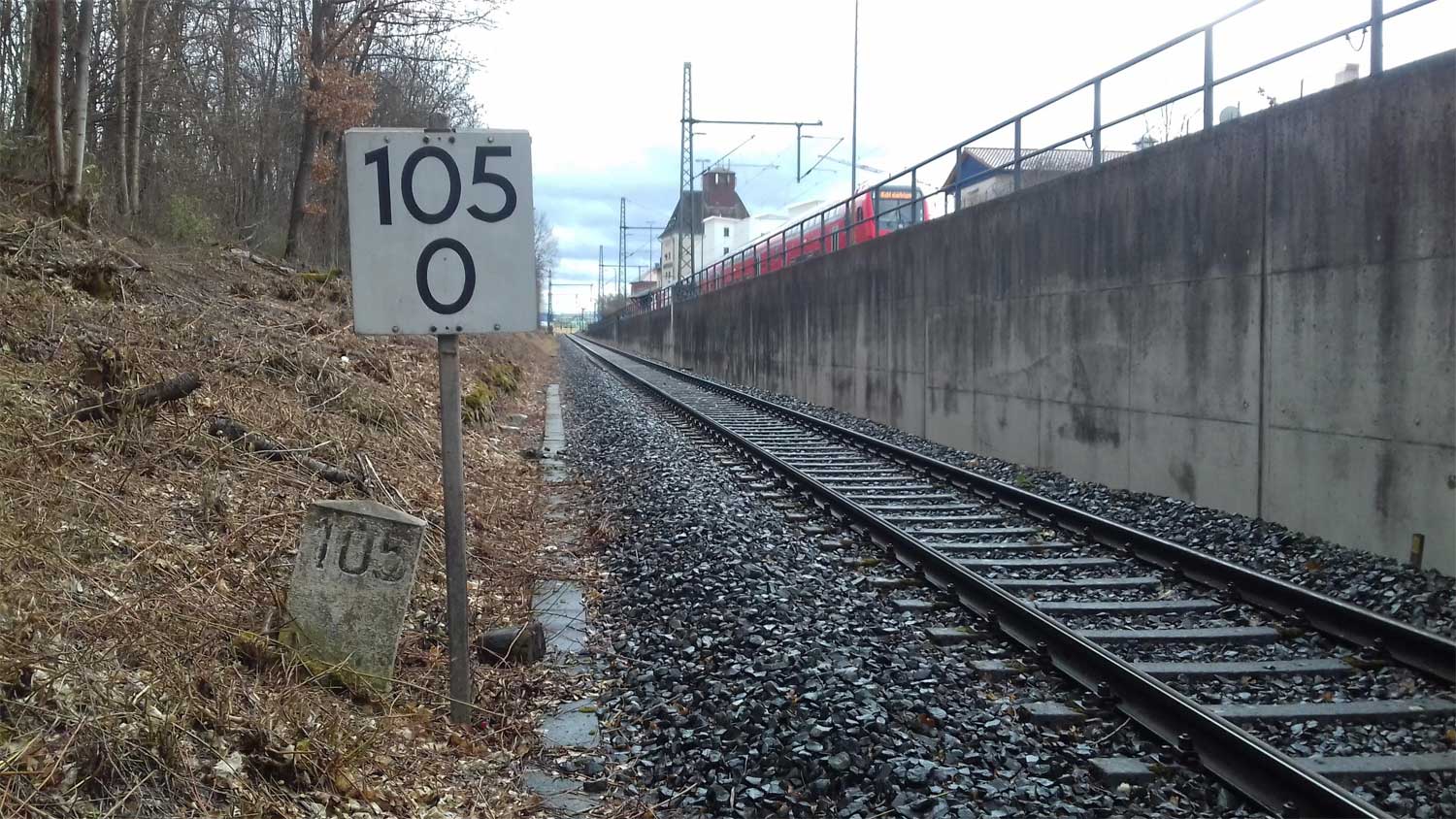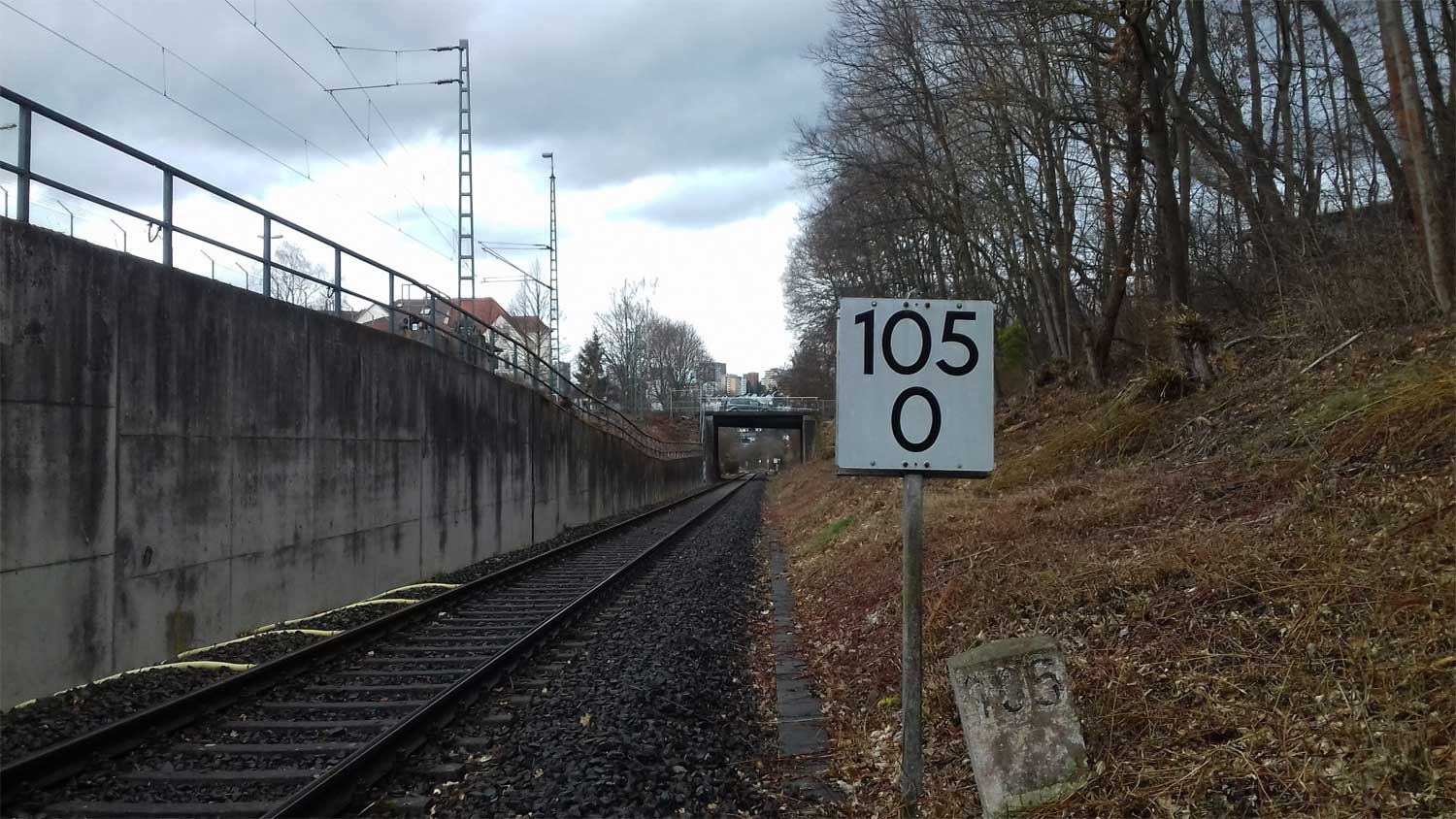 km 105,2 (Stein und Tafel) in Fulda - Blick Richtung Fulda