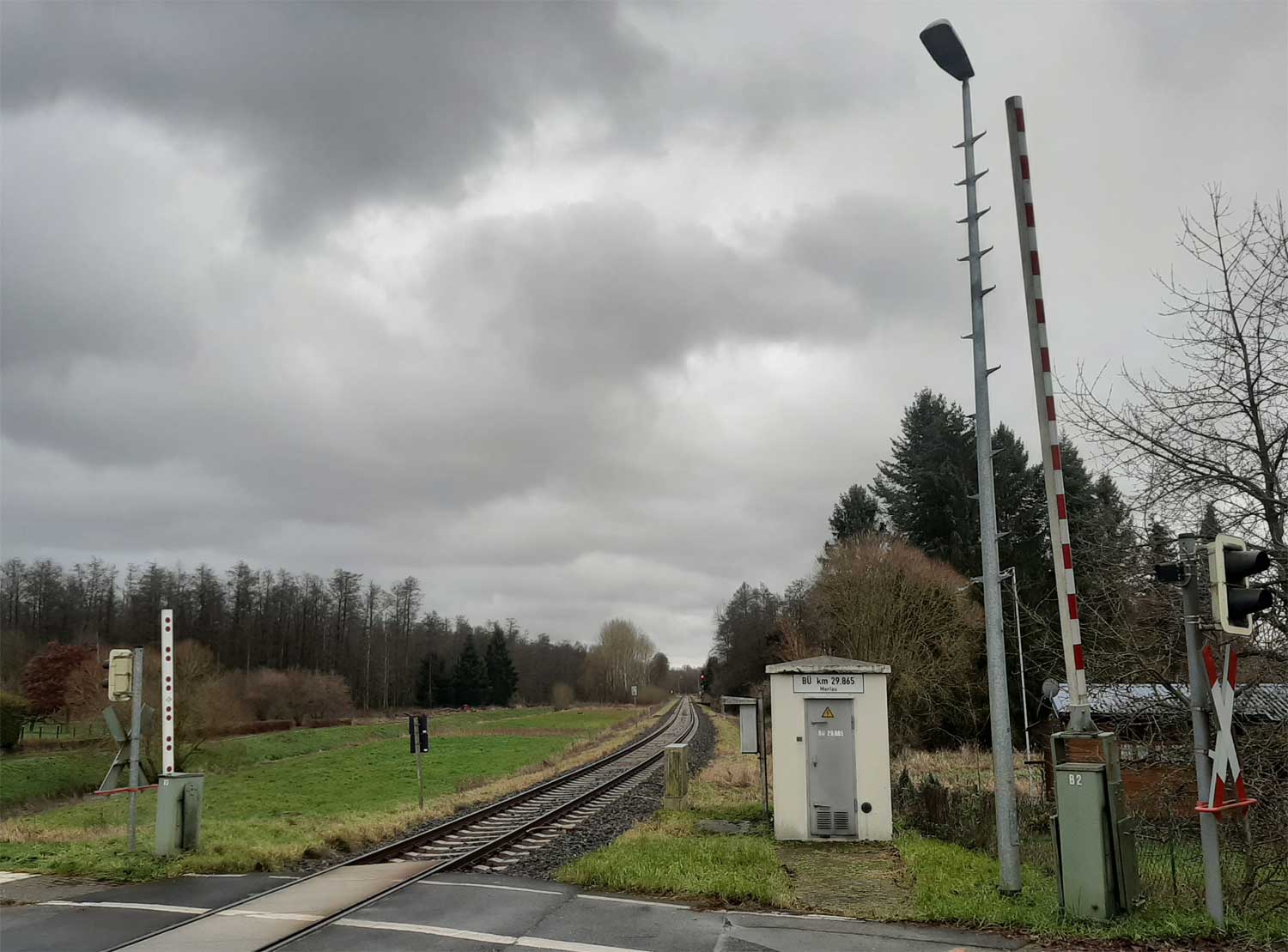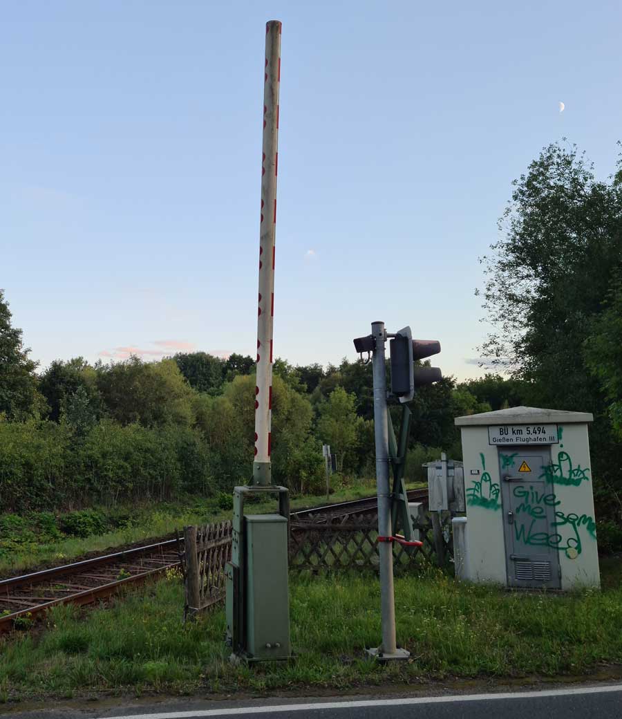 BÜ km 5,494 an der Awanst Gießen-Flughafen - Blick Richtung Gießen