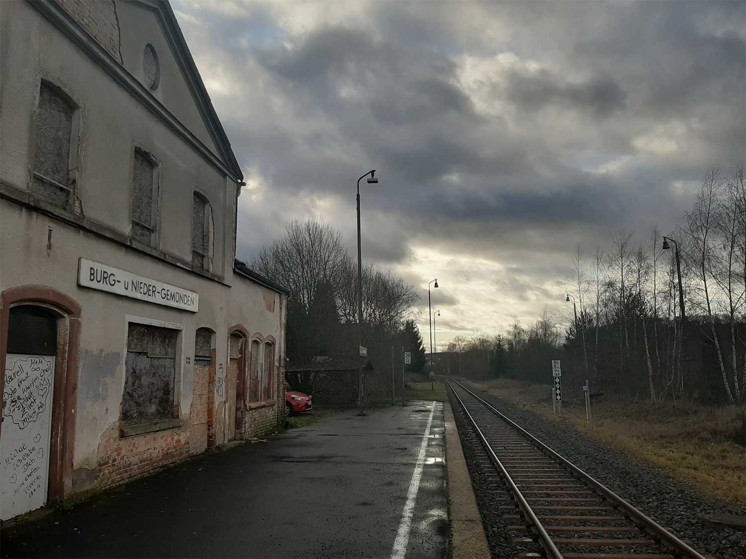 Burg- und Niedergemünden | 38,03 | km 0,0 der Strecke Burg- und Nieder-Gemünden 0,0 - Kirchhain (Bez Kassel) 20,08 |