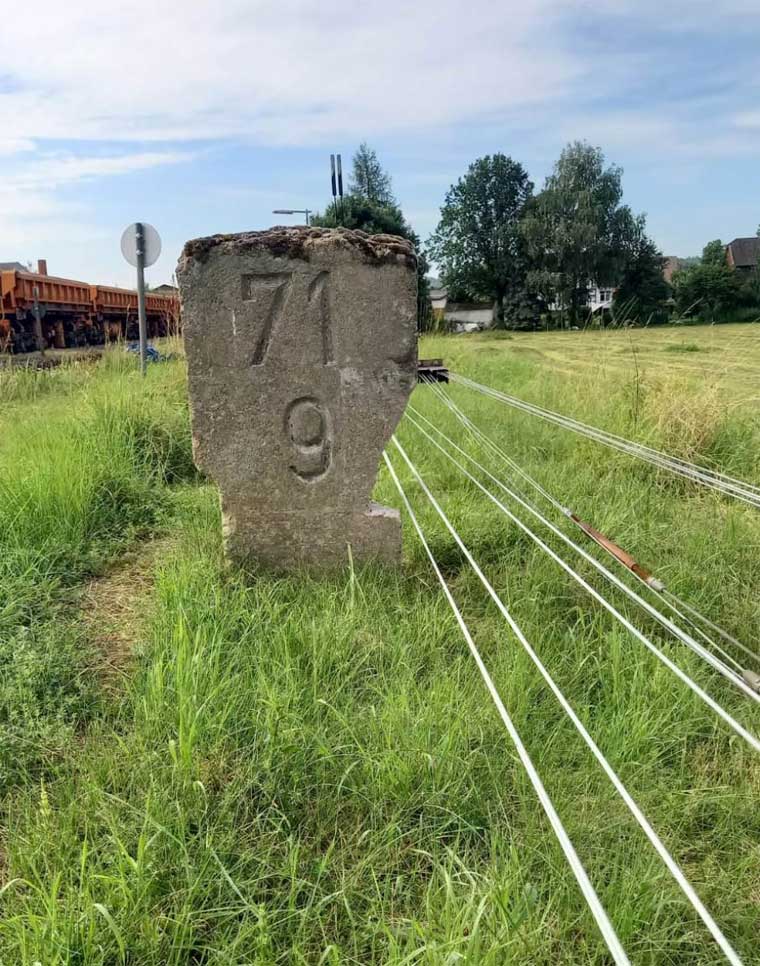 km 105,2 (Tafel und Stein) in Fulda - Blick Richtung Gießen
