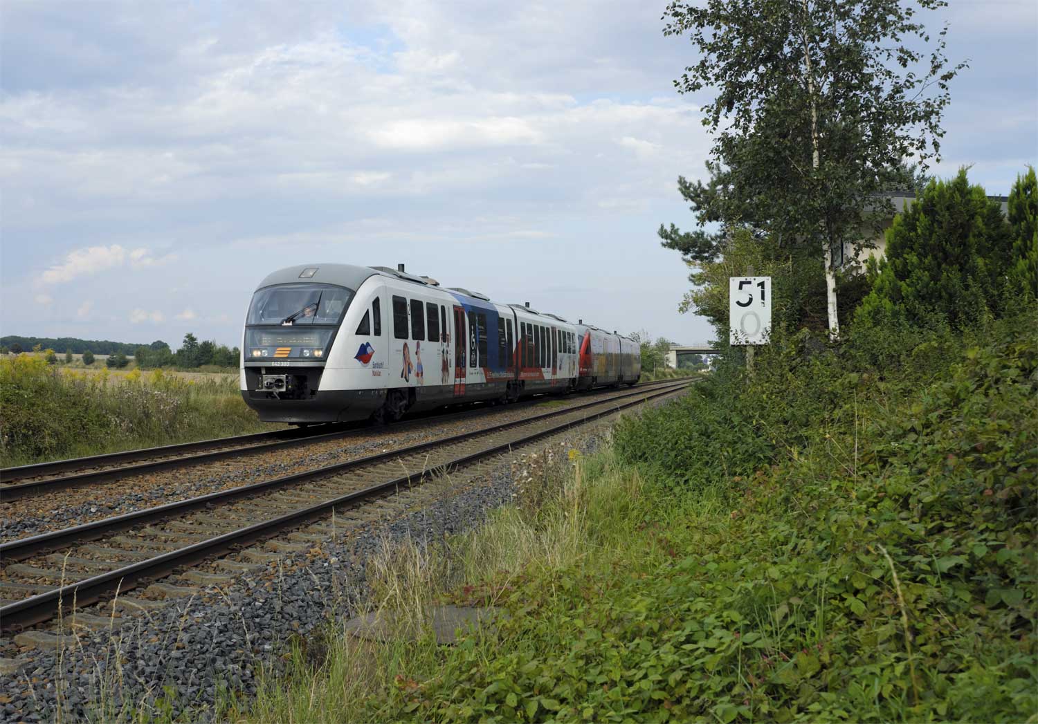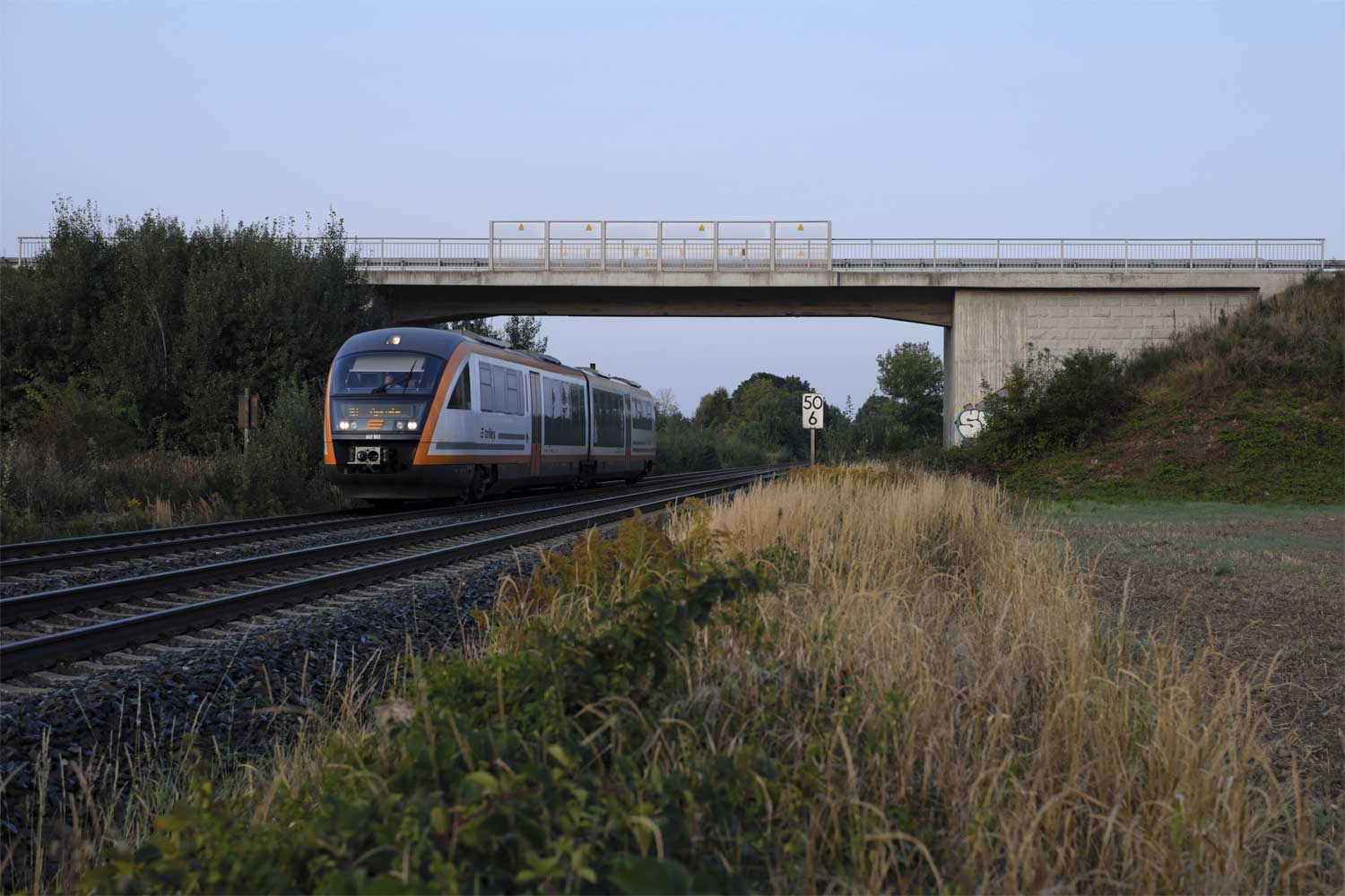 km 41,8 (Stein und Tafel) zwischen Kubschütz und Bautzen - ODEG 650.083
