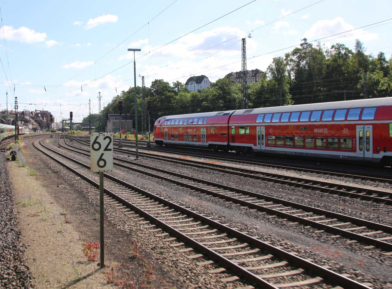 Gießen | 133,97 | km 166,00 der Strecke Köln Deutz 0,0 - Troisdorf 20,06 - Au (Sieg) 64,76 - Betzdorf (Sieg) 82,97 - Haiger 118,83 - Dillenburg 125,00 - Wetzlar 153,40 - Gießen 166,00 |