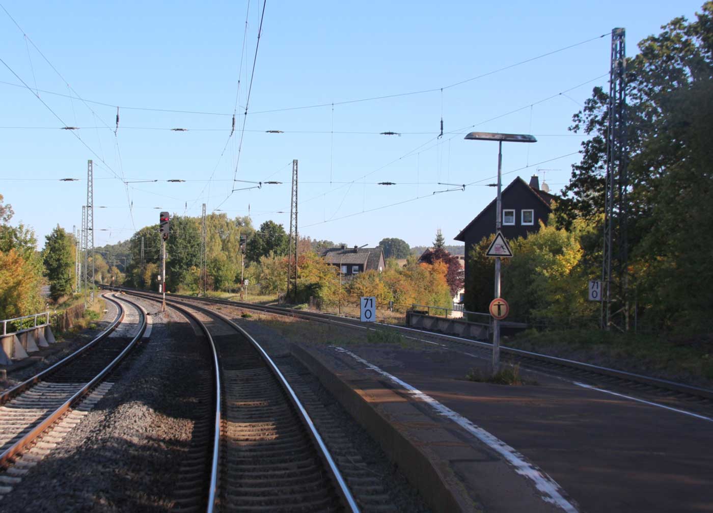 km 166,23 der Strecke Hannover Hbf 0,0 - Barnten 22,87 - (Abzw. nach Abzw. Rössing 26,68) - Northeim (Han) 88,56 - Göttingen 108,16 - Dransfeld 123,84 - Hann. Münden 142,03 - Kassel Hbf 166,23 | ||