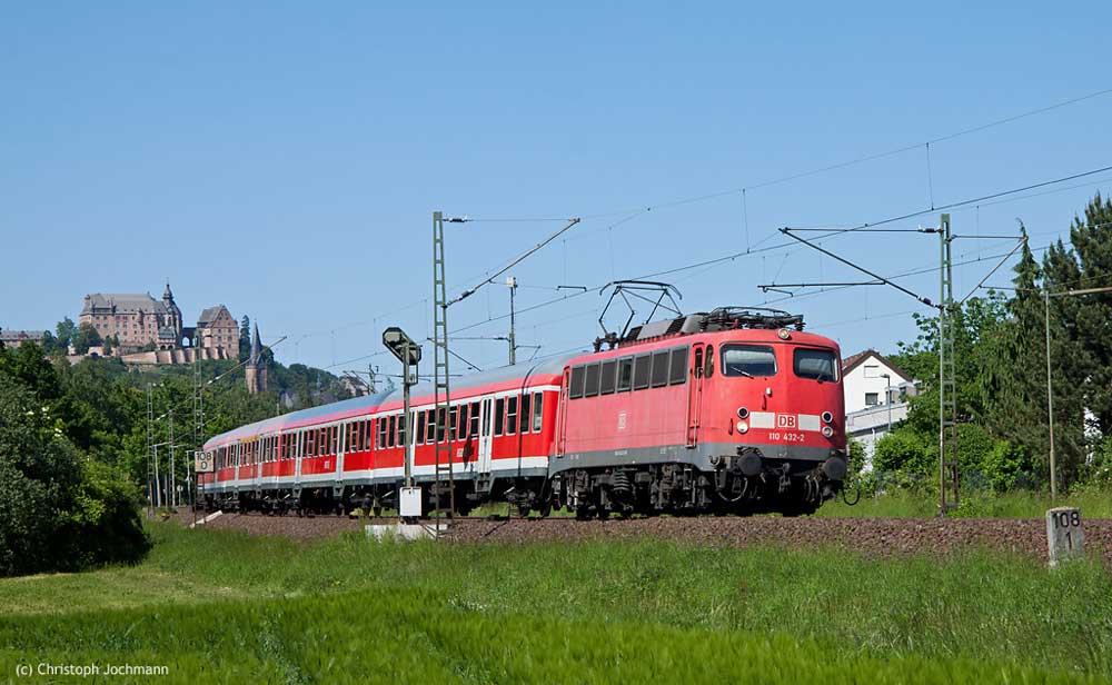 110 432 mit RE 15021 auf dem Weg nach Gießen