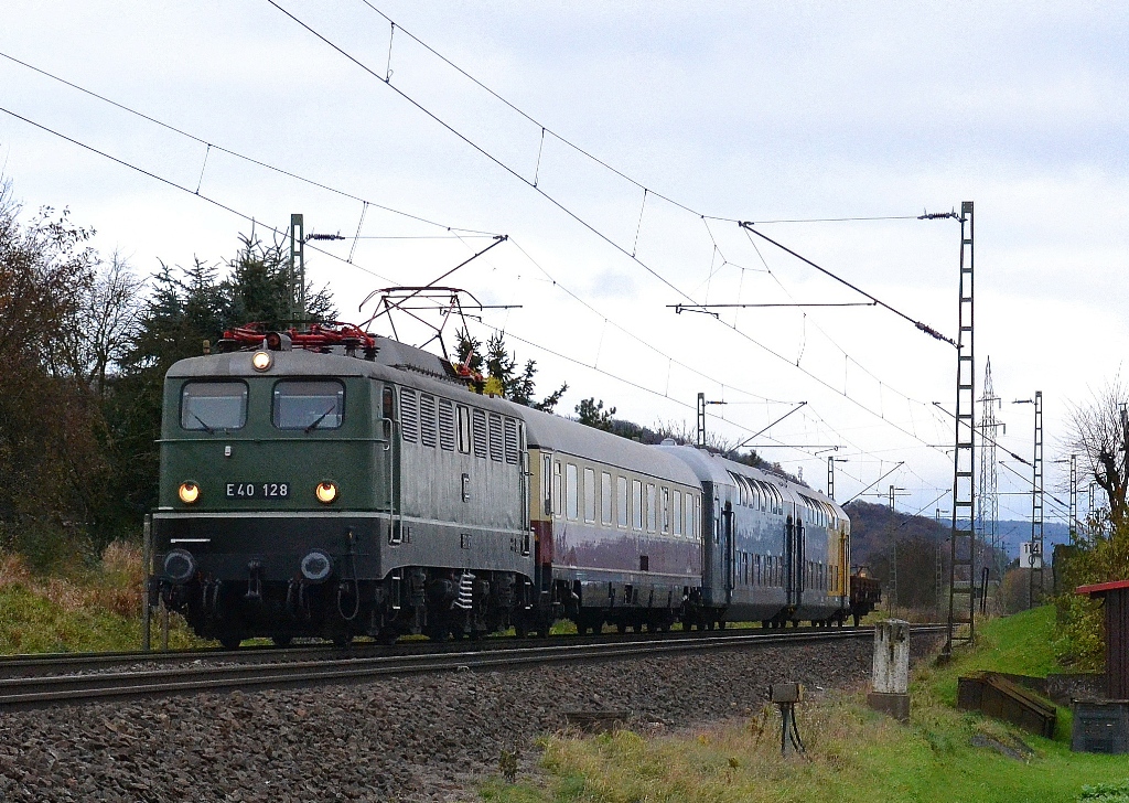 km 114,1 zwischen Niederweimar und Niederwalgern - E 40 128 mit Lr 91340 (Kassel Rbf - Nürnbrg Gbf)
