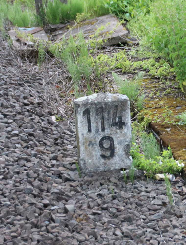 km 110,4 (Tafel) und km 110,5 (Stein) zwischen Marburg Süd und Niederweimar