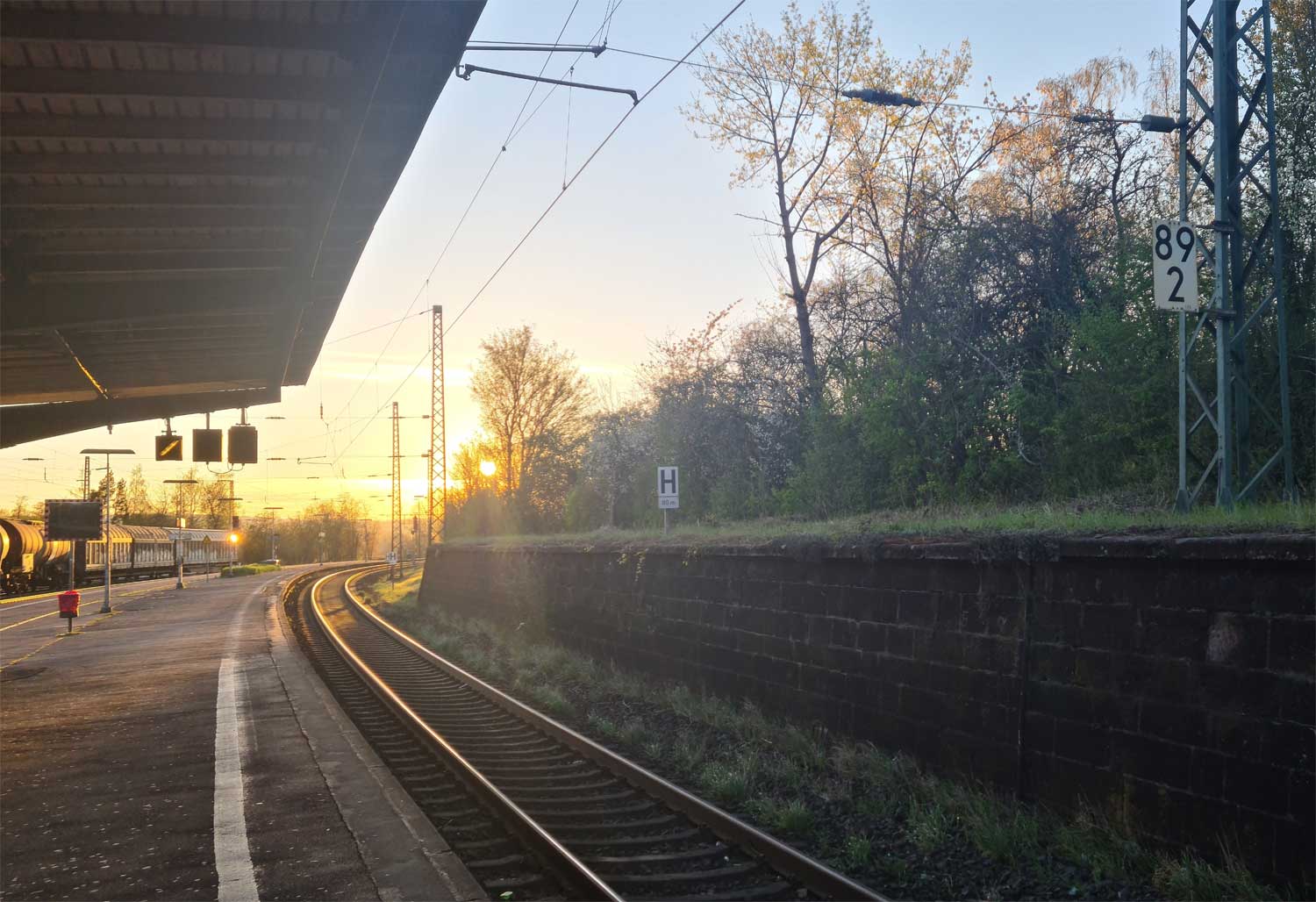 km 166,23 der Strecke Hannover Hbf 0,0 - Barnten 22,87 - (Abzw. nach Abzw. Rössing 26,68) - Northeim (Han) 88,56 - Göttingen 108,16 - Dransfeld 123,84 - Hann. Münden 142,03 - Kassel Hbf 166,23 | ||
