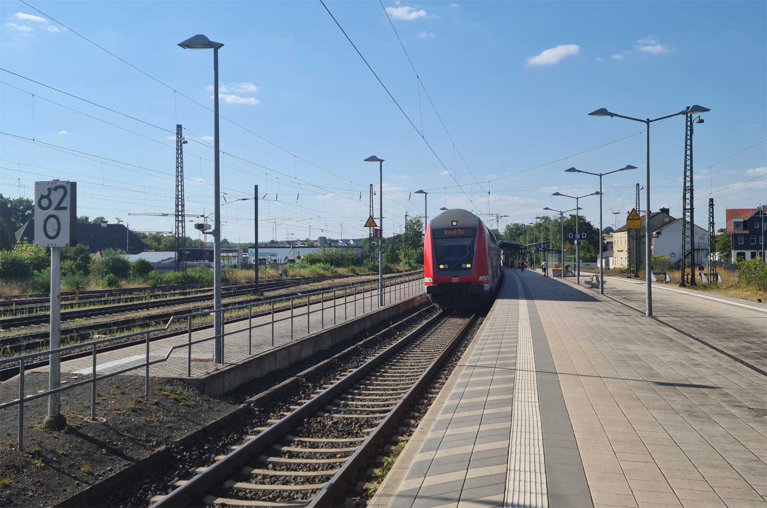 Gießen | 133,97 | km 166,00 der Strecke Köln Deutz 0,0 - Troisdorf 20,06 - Au (Sieg) 64,76 - Betzdorf (Sieg) 82,97 - Haiger 118,83 - Dillenburg 125,00 - Wetzlar 153,40 - Gießen 166,00 |