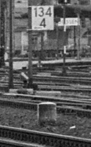 km 134,4 (Tafel) und km 134,5 (Stein) in Gießen - Detail