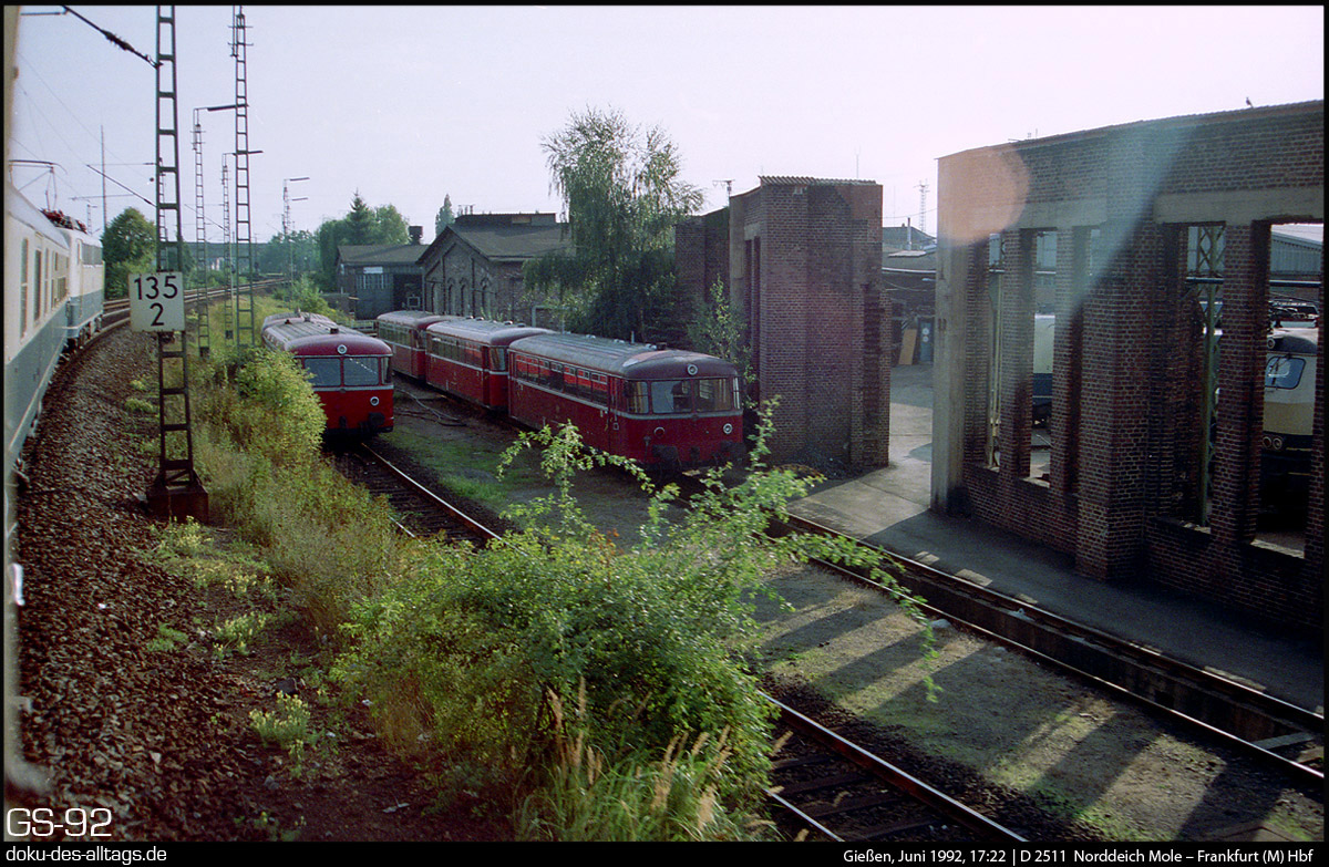 Gießen | 133,97 | km 166,00 der Strecke Köln Deutz 0,0 - Troisdorf 20,06 - Au (Sieg) 64,76 - Betzdorf (Sieg) 82,97 - Haiger 118,83 - Dillenburg 125,00 - Wetzlar 153,40 - Gießen 166,00 |