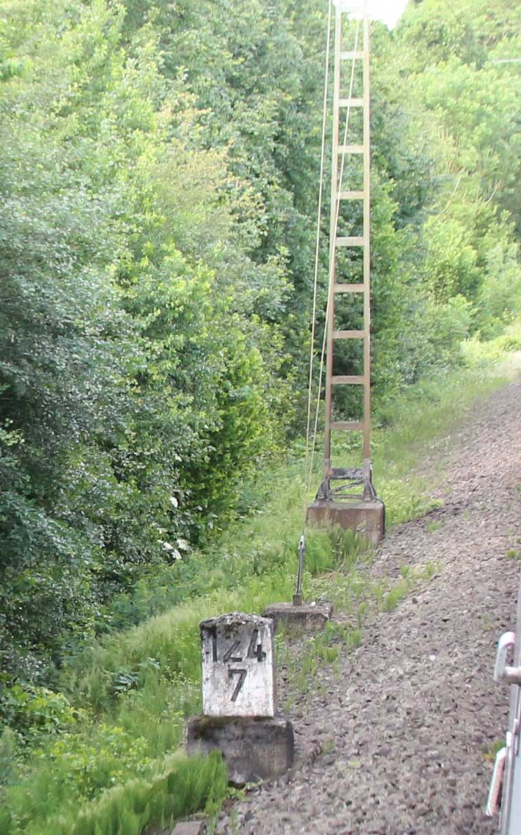 km 131,2 (Stein und Tafel) zwischen Lollar und Gießen