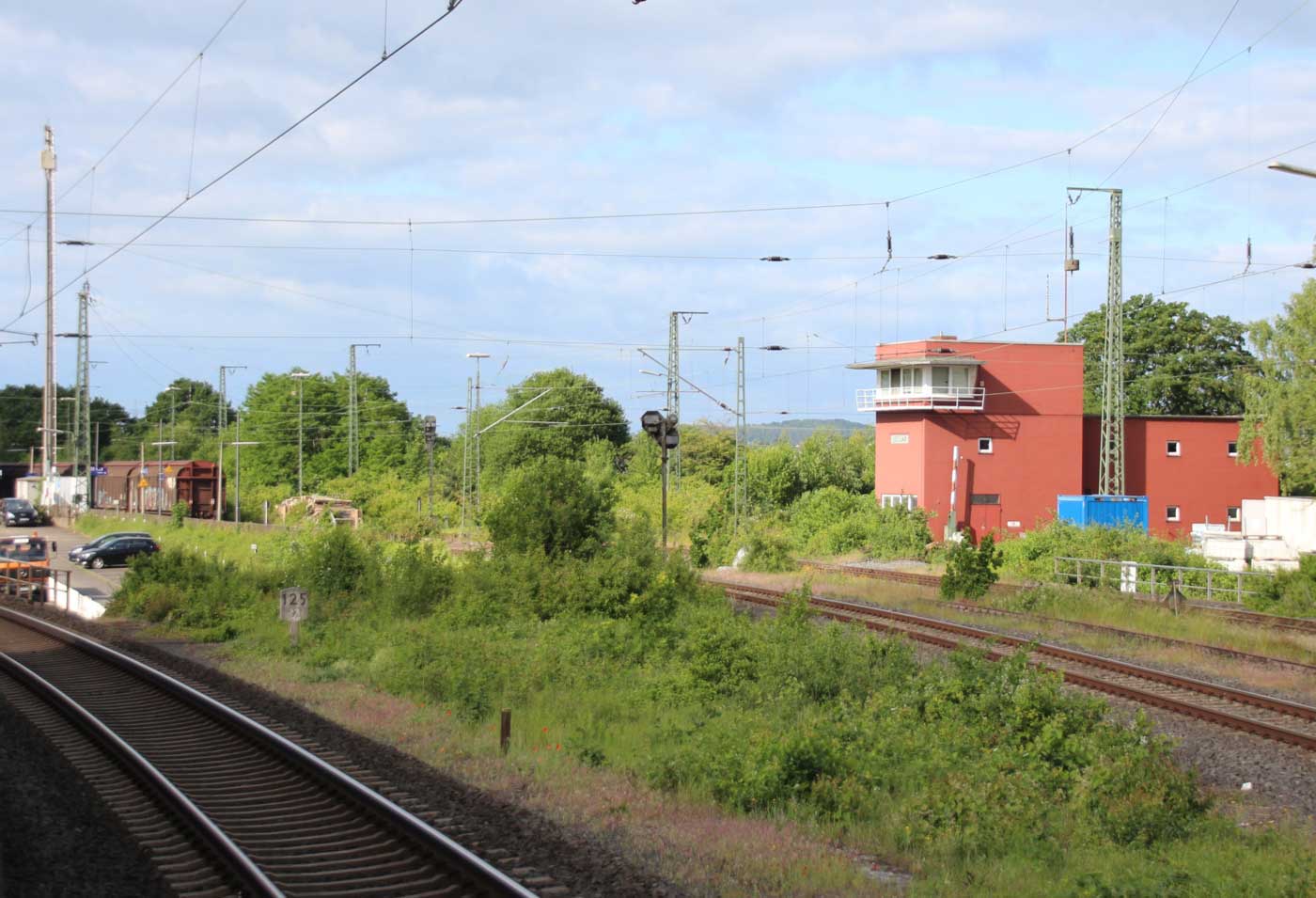 km 166,23 der Strecke Hannover Hbf 0,0 - Barnten 22,87 - (Abzw. nach Abzw. Rössing 26,68) - Northeim (Han) 88,56 - Göttingen 108,16 - Dransfeld 123,84 - Hann. Münden 142,03 - Kassel Hbf 166,23 | ||
