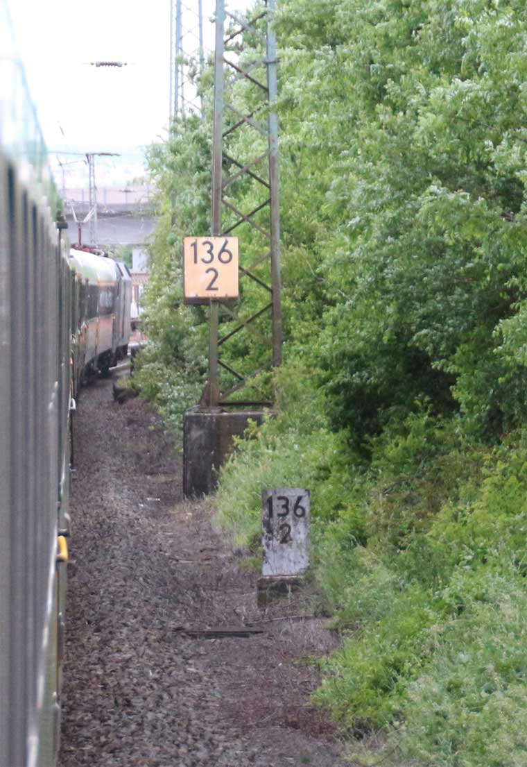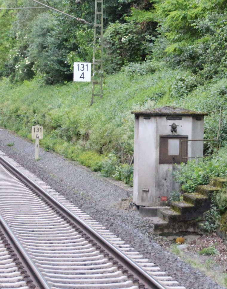 km 132,0 (Tafel - Stein - Tafel); km 132,1 Stein) und km 132,2 (Stein) zwischen Lollar und Gießen