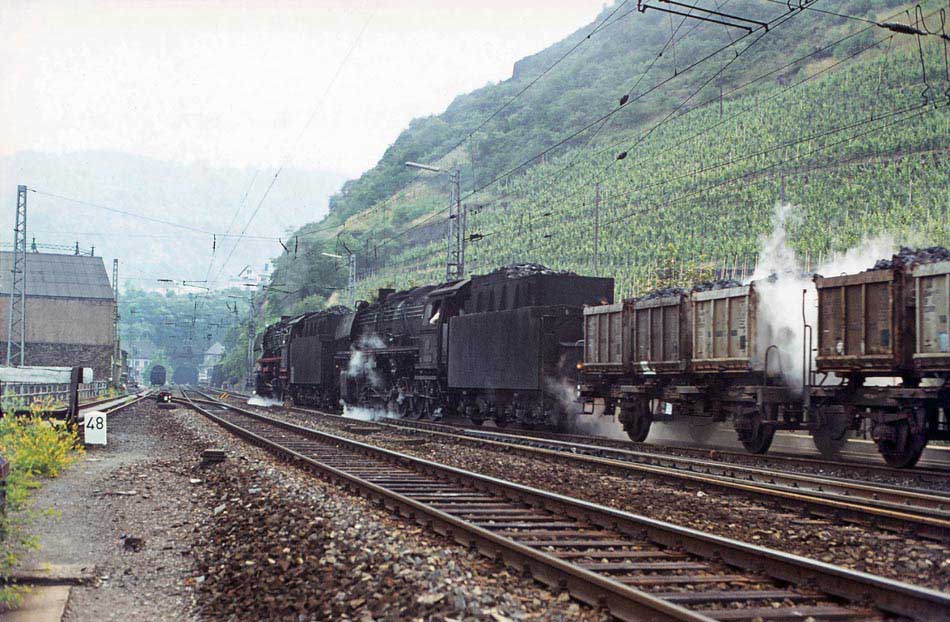 Wegen der Bauarbeiten im Kaiser-Wilhelm-Tunnel wurde der mit Vorspann gefahrene Güterzug von zwei Schiebeloks, zur Vermeidung von Qualm, durch den Tunnel geschoben.