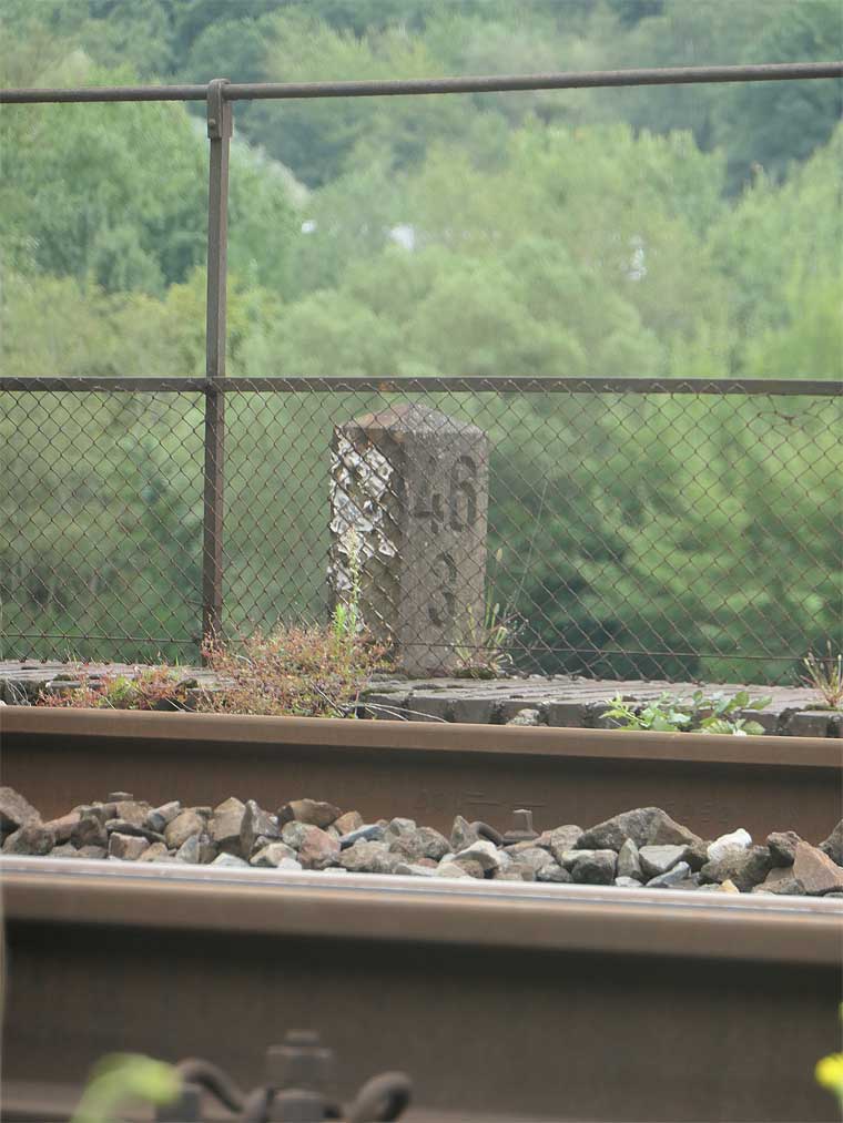 km 0,0 der Strecke Karthaus 0,0 - Igel 5,190 - Grenze Deutschland/Luxemburg 8,166 = [km 37,442 - Wasserbillig 36,884 - Luxemburg 0,0] | ||