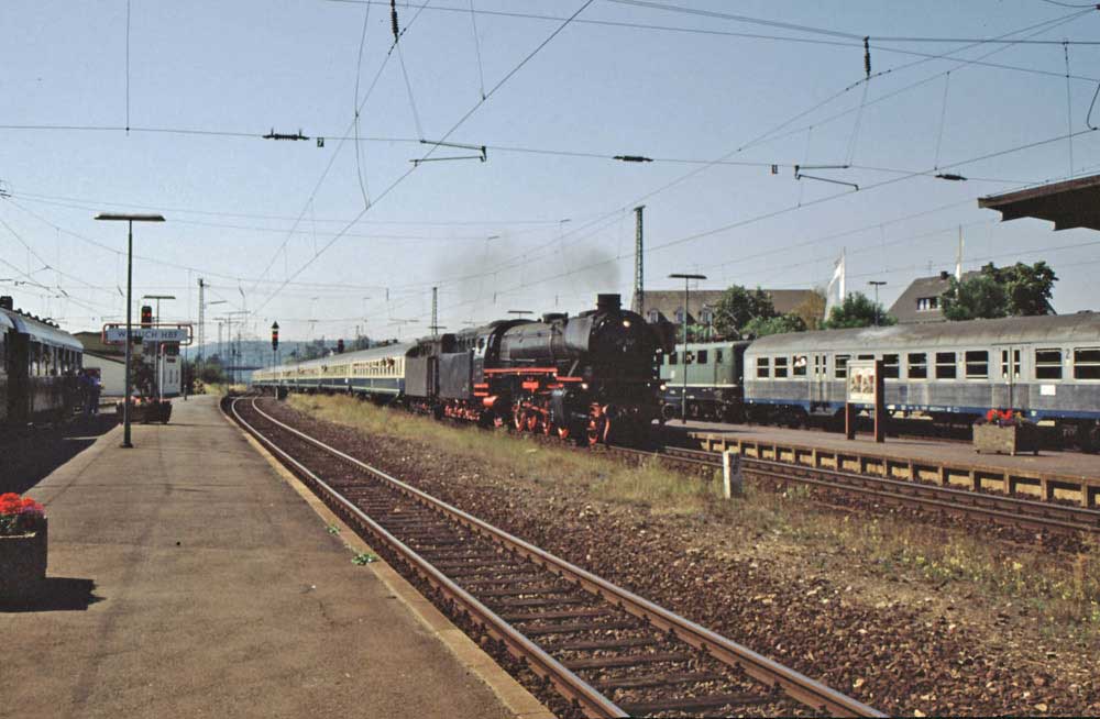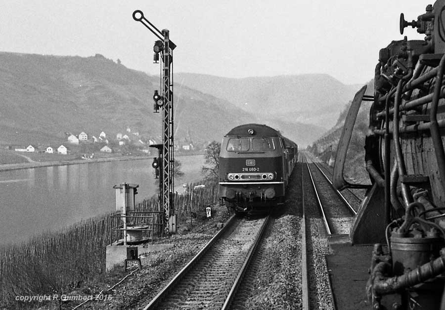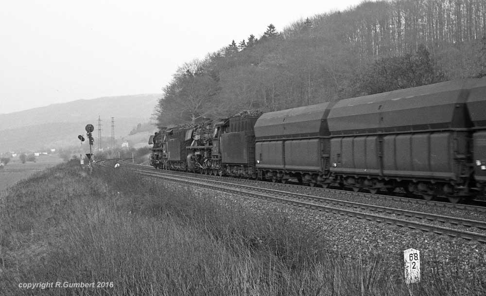 044 482 war nicht allein am Zug. 290 131 des Bw Trier leistete ihr als Schiebelok Unterstützung, wie. Die Lok war erst am 04.04.68 abgenommen und dem Bw Trier übergeben worden. Am 26.05.74 ging sie zum Bw Kaiserlautern, am 15.06.76 zum Bw Saarbrücken und wurde mit gleichzeitiger Umstationierung zum Bw Mönchen-Gladbach am 09.10.97 zur 294 131-8 umgebaut. Am 01.06.99 erfolgt die Umstationierung zum Bw Wuppertal-Steinbeck, am 23.08.99 zum Bw Nürnberg-2 und am 11.04.2003 zum Bw Kornwestheim.