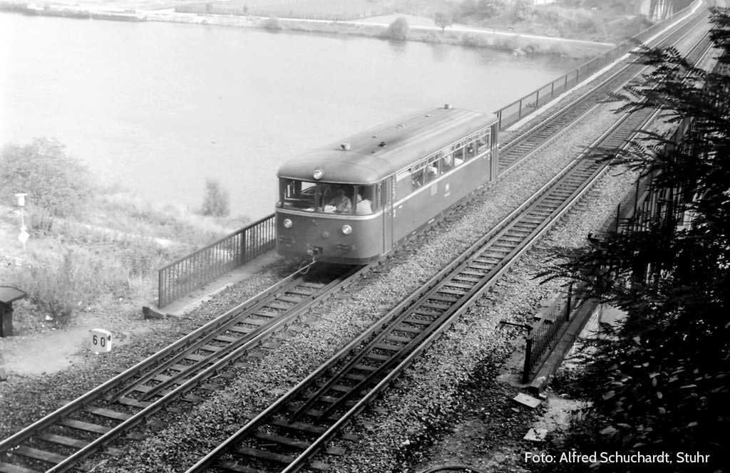 Der Triebwagen wird gleich die Strecke verlassen, um auf die Strecke nach Traben-Trarbach einzuschwenken.