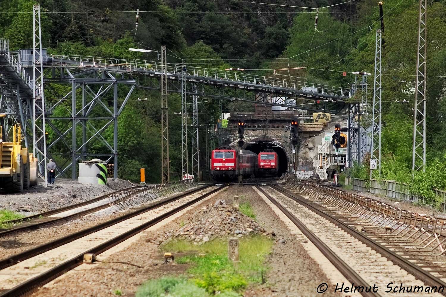 044 277 verlässt auf ihrer Fahrt in Ri Koblenz gerade den Tunnel