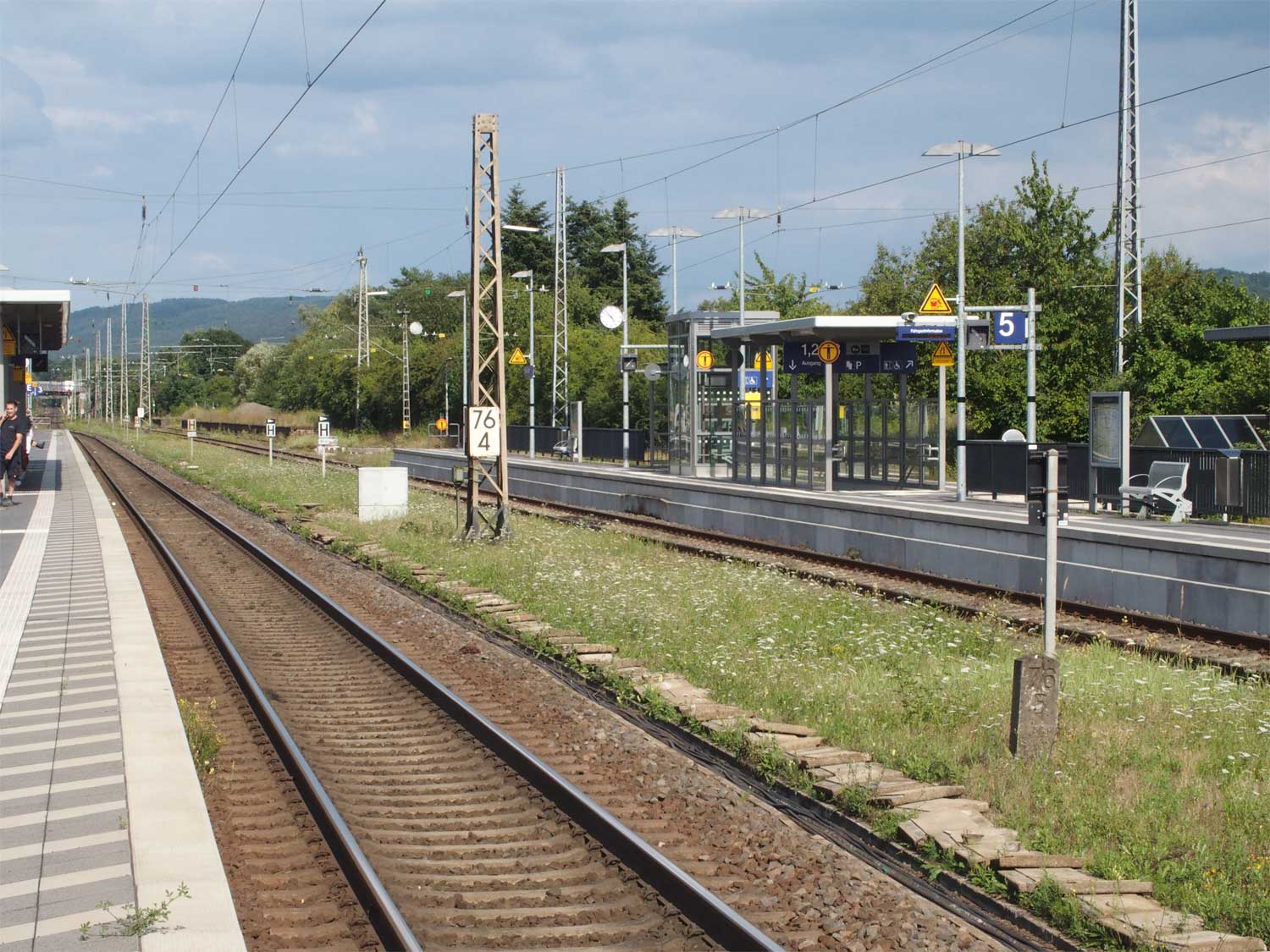 km 76,4 (Tafel) und km 76,5 (Stein) in Wittlich Hbf (früher: Wengerohr) - Blick Richtung Koblenz