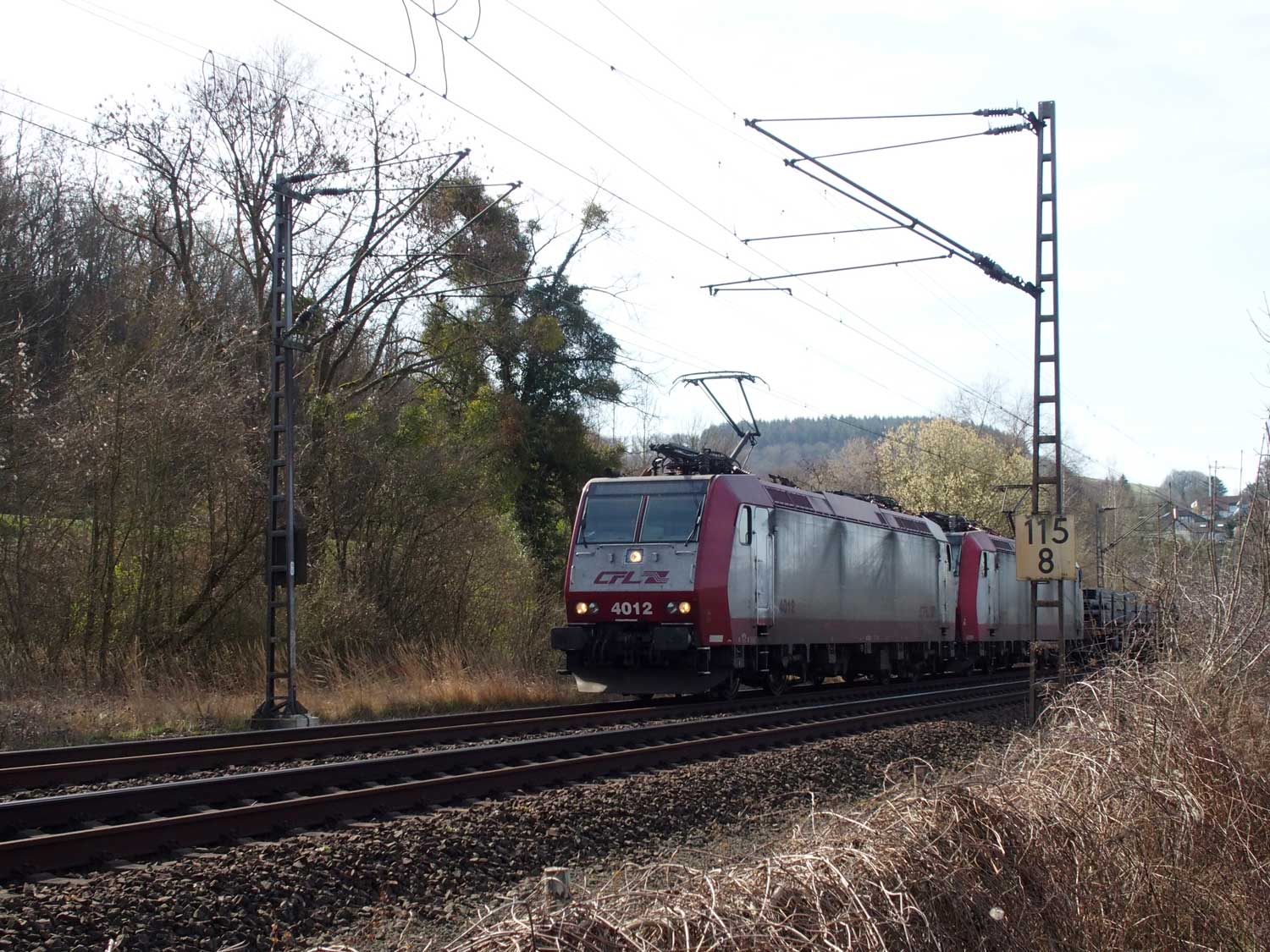 Ehrang | 105,407 | km 163,466 der Strecke Kalscheuren (Hürth-Kalscheuren) 0,64 - Euskirchen 30,06 - Jünkerath 82,97 - Gerolstein 101,046 - Ehrang 163,46 |