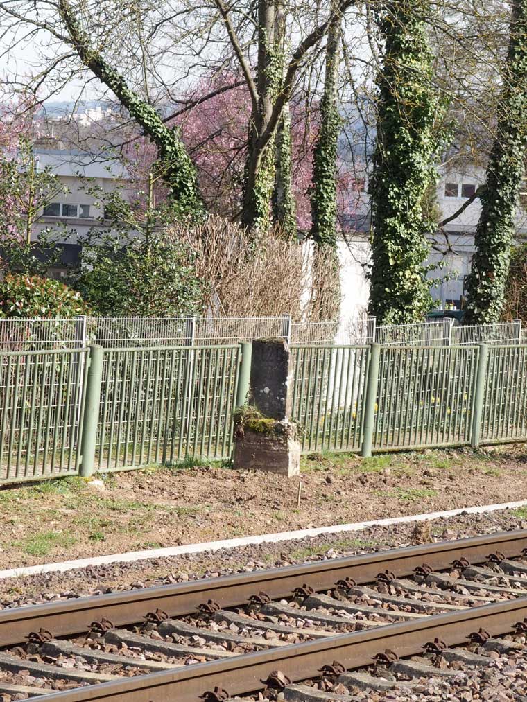 km 123,4 (Stein und Tafel) in Wasserliesch - Blick Richtung Perl
