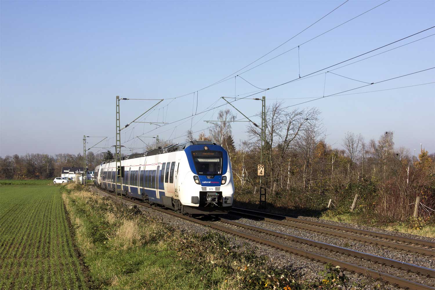 Köln Hbf 0,0 - Neuß 34,40 - Krefeld Hbf 53,56 - Kleve 118,37 - Kranenburg 129,26 - Staatsgrenze Deutschland/Niederlande 131,10 - (Nijmegen)