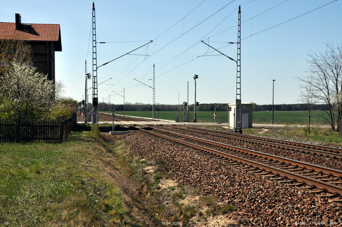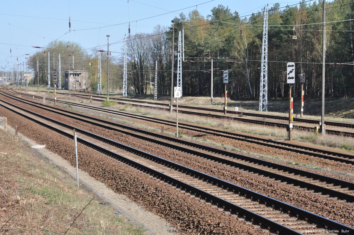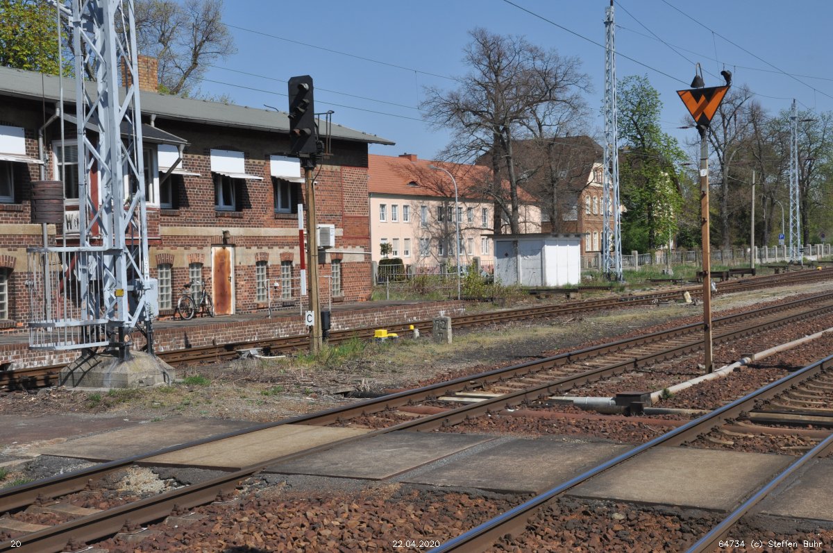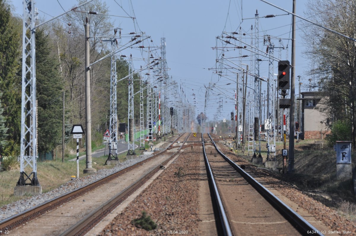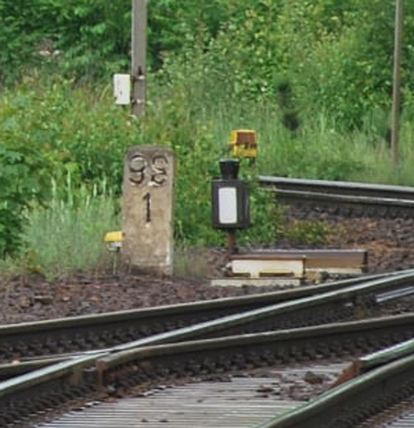 km 0,31 der Strecke Falkenberg (Elster) 0,31 - Uckro 49,39 - Luckau 57,39 - Lübben Hp 73,2 - Beeskow 113,662 | ||