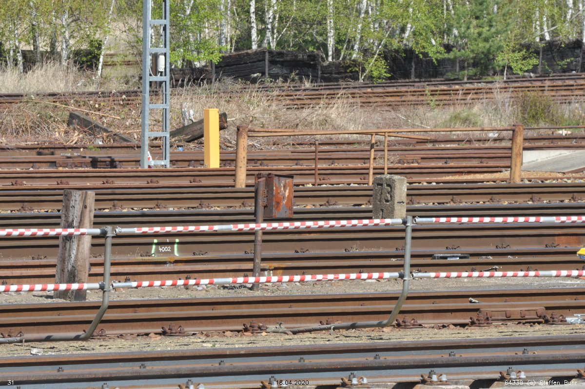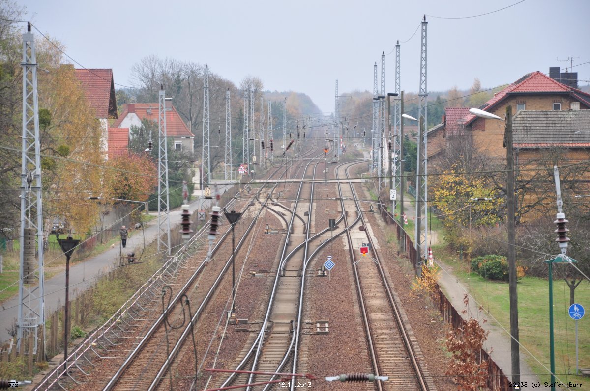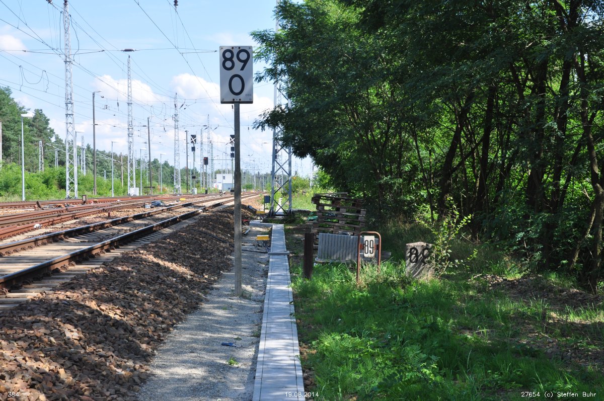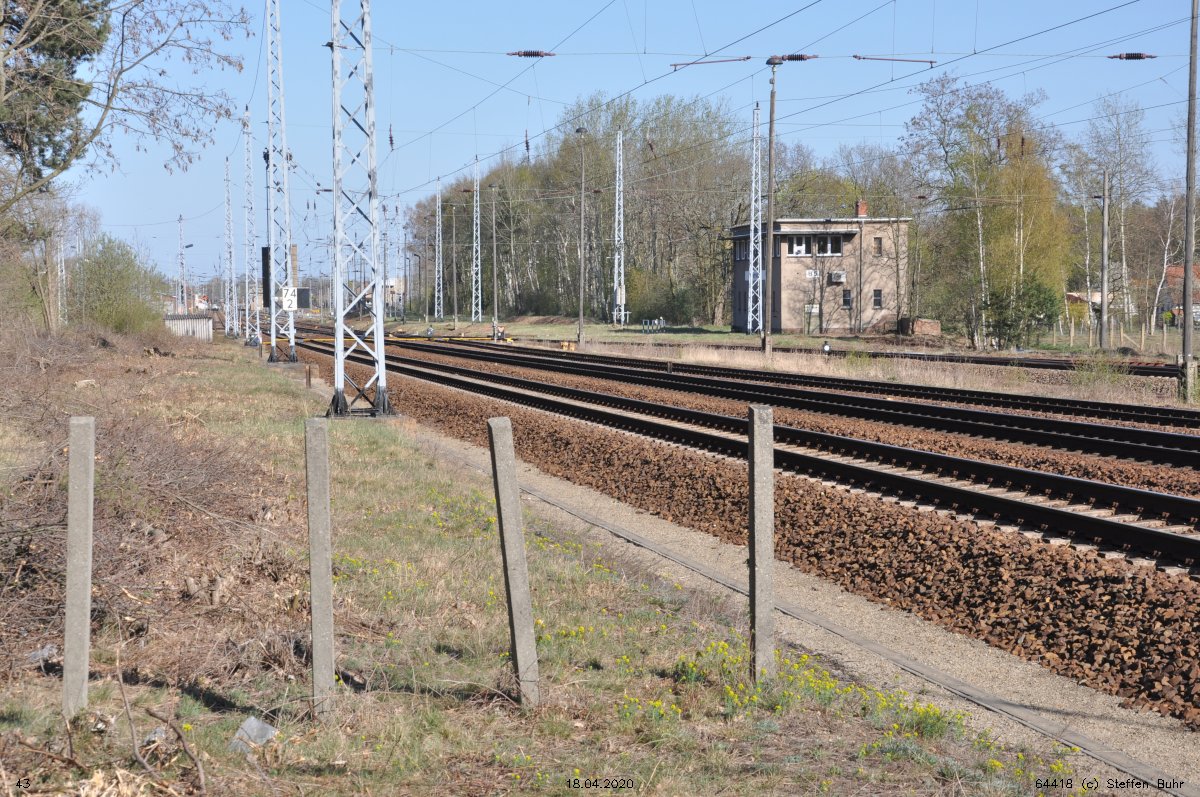 km 0,31 der Strecke Falkenberg (Elster) 0,31 - Uckro 49,39 - Luckau 57,39 - Lübben Hp 73,2 - Beeskow 113,662 | ||