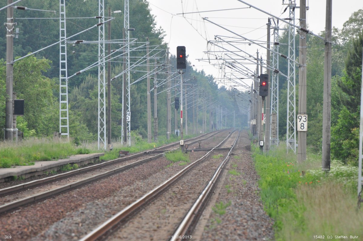 Rechts oben die Strecke Abzw Peickwitz 7,332 - Hosena, W 56, km 8,802 (6199 Nordbahn)