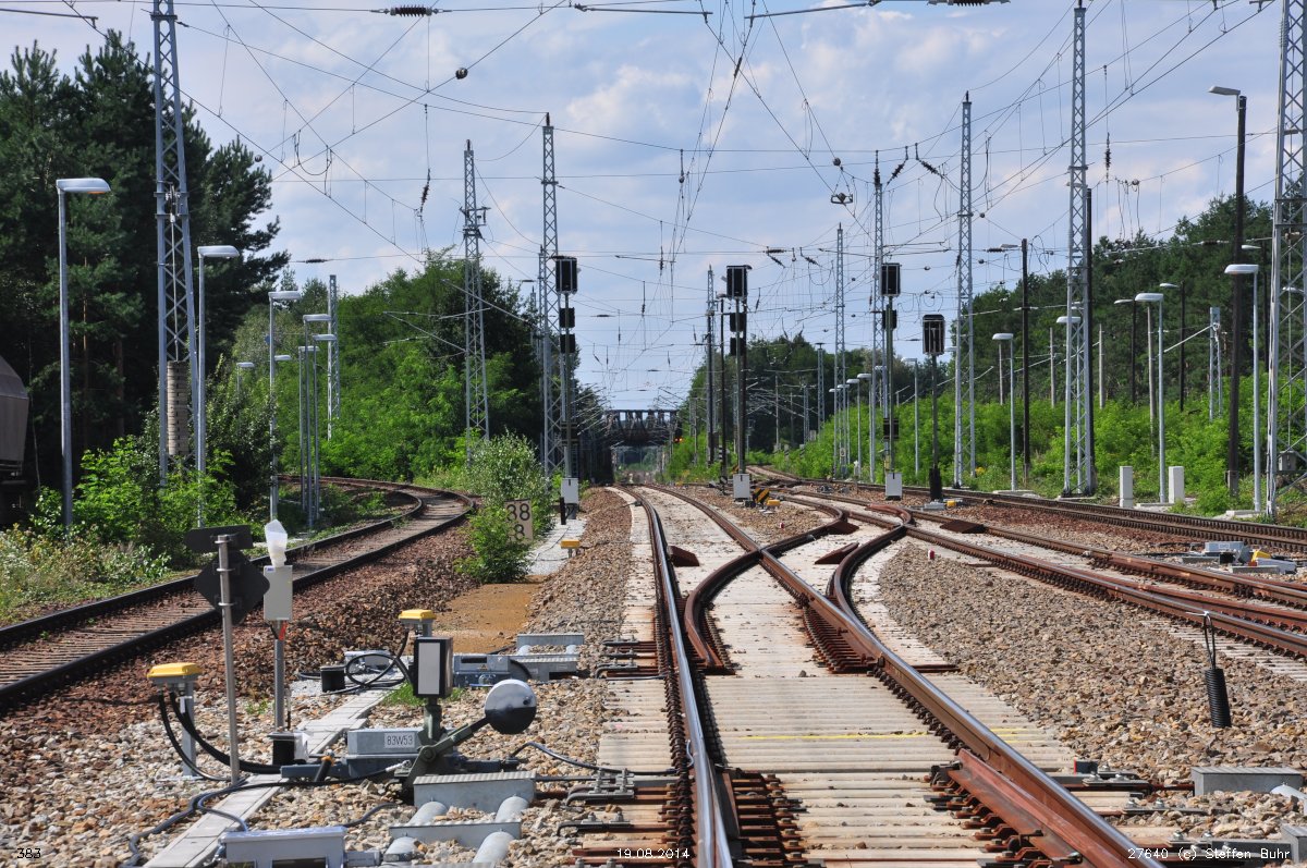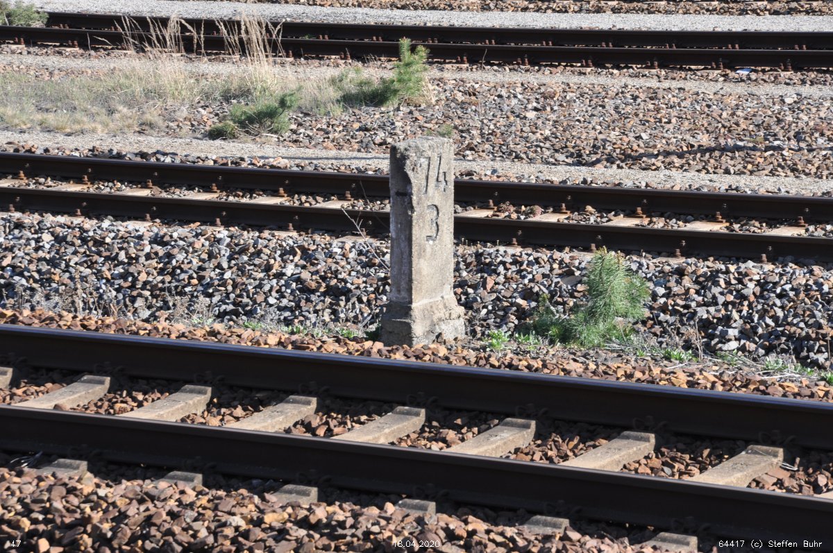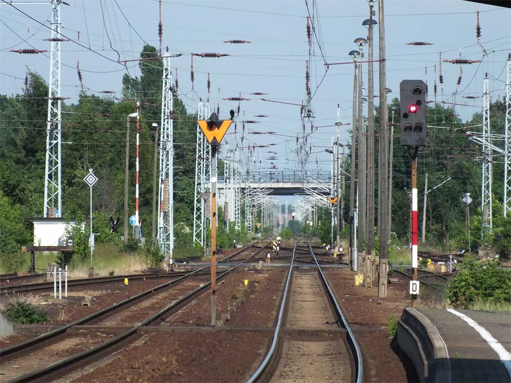 Großenhain Cottb. Bf 0,0 - Senftenberg 45,29 - Cottbus 79,67 - Frankfurt (Oder) Pbf 152,85 (Personenzuggleise)/152,79 (Güterzuggleise)