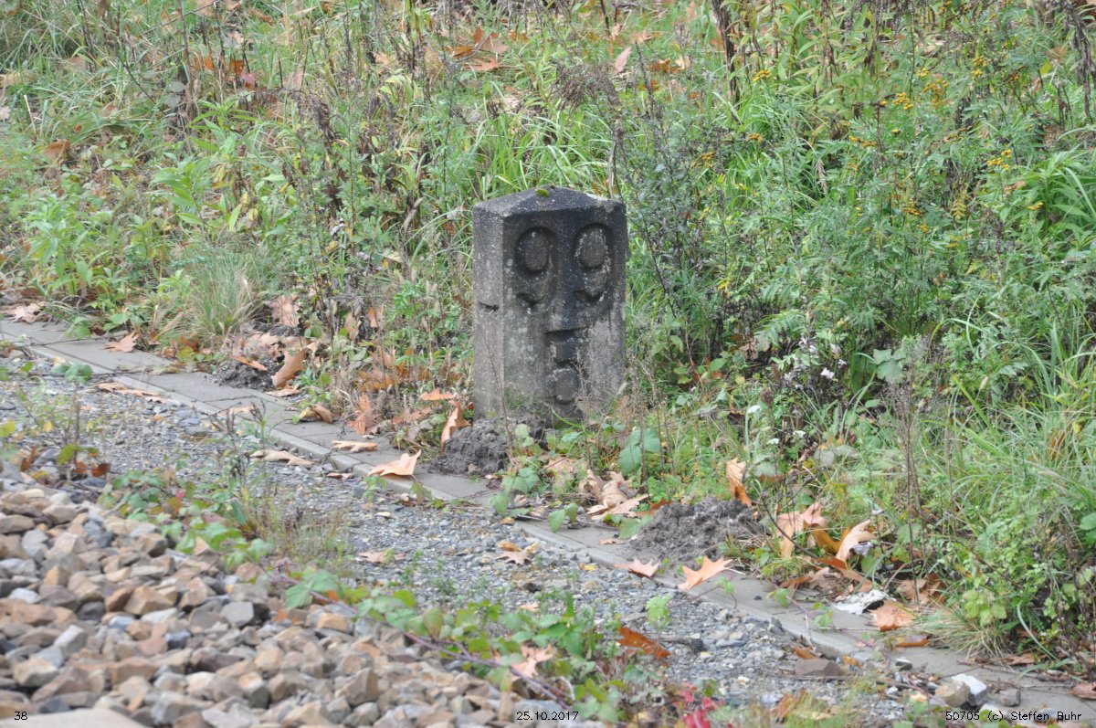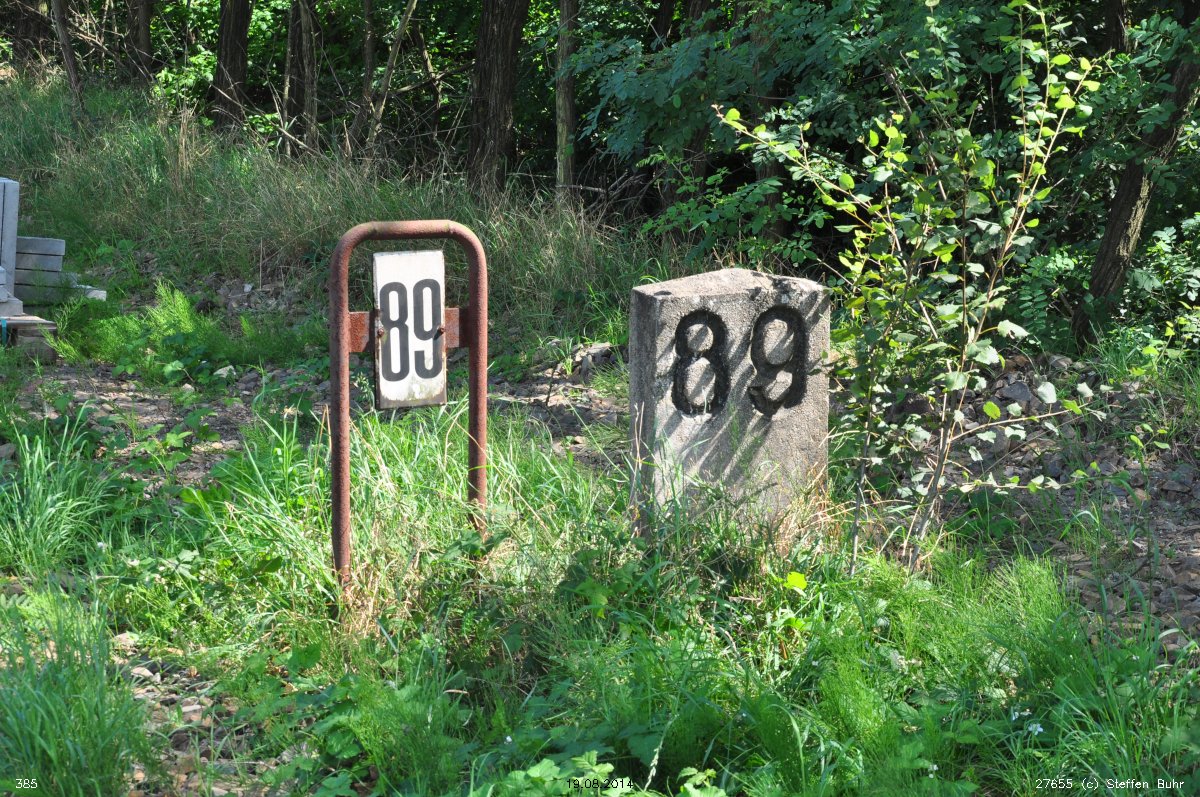 Der noch zu erkennende Stein muss km 33,1 der Strecke