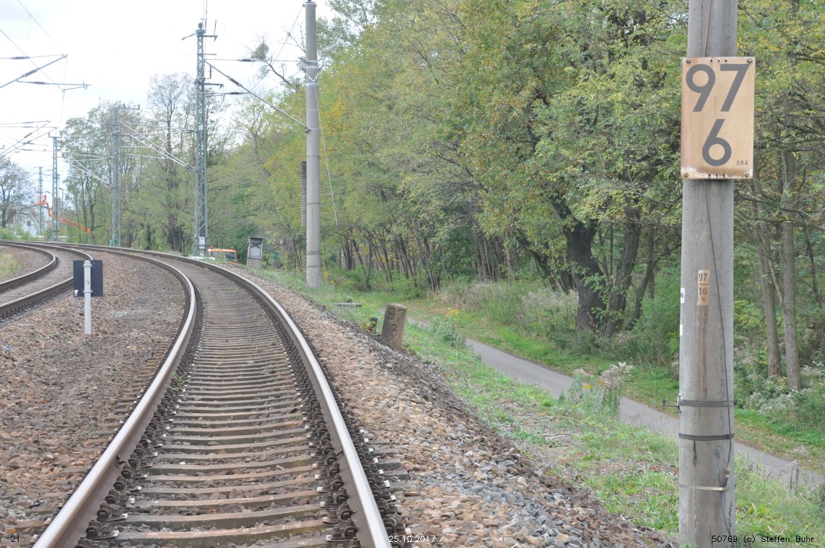 Überlänge | 1500 m | km 61,40 + 1700 m = km 61,60 Umverlegung der Strecke wegen Tagebau 1962 |