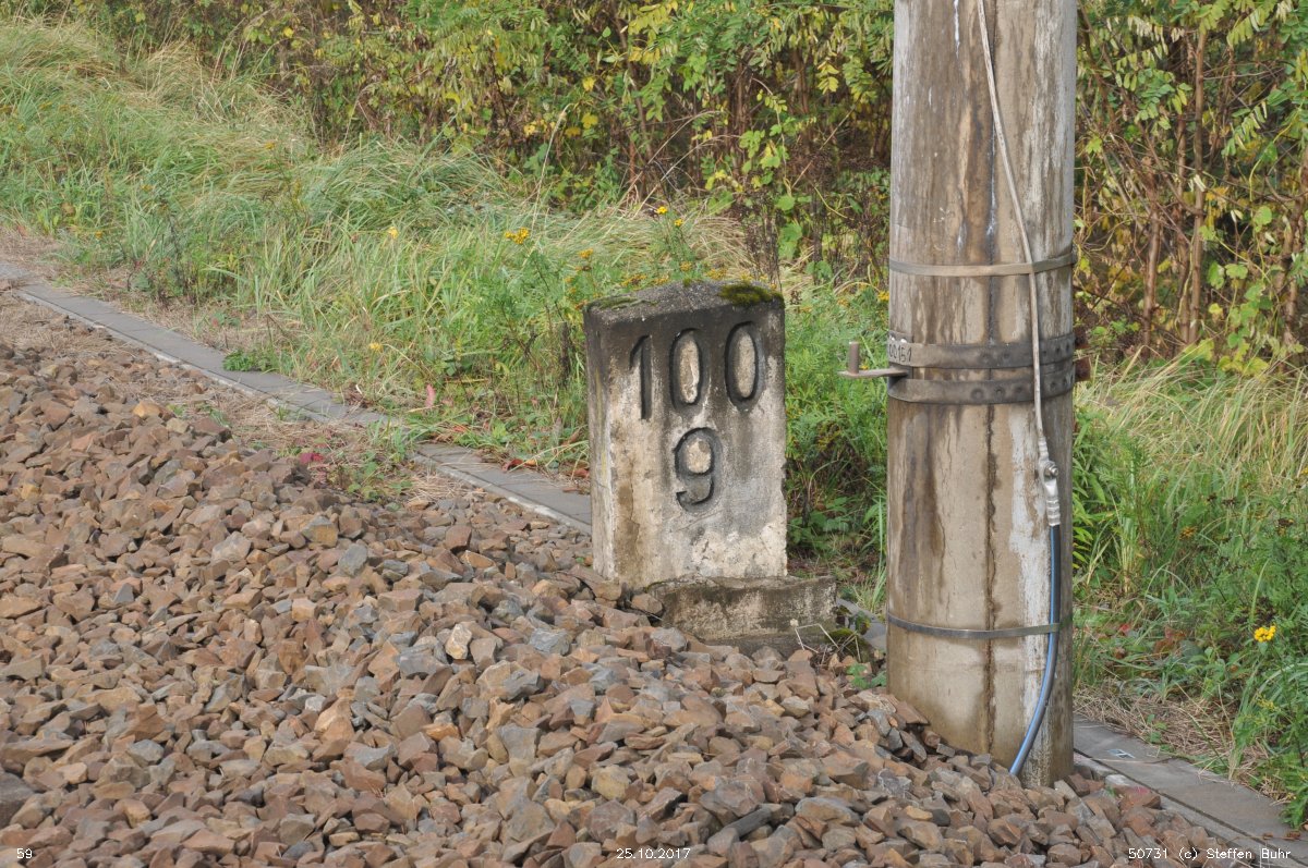 Überlänge | 1500 m | km 61,40 + 1700 m = km 61,60 Umverlegung der Strecke wegen Tagebau 1962 |