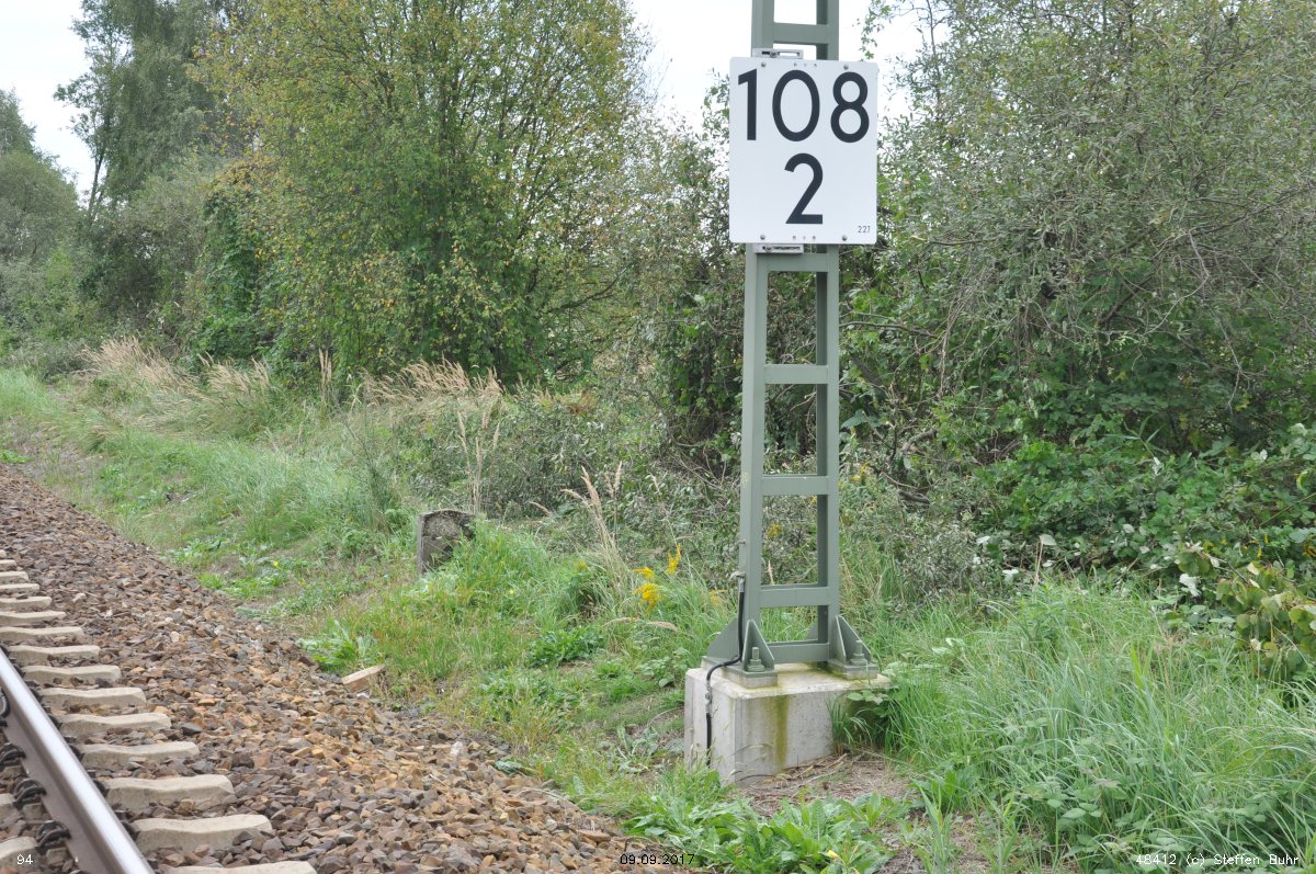 km 107,4 (Stein und Tafel) zwischen Lauchhammer Süd und Lauchhammer West