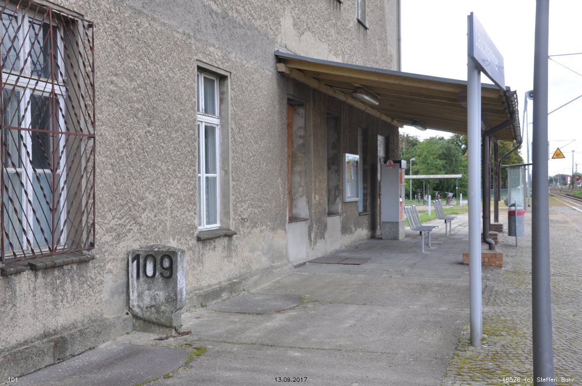 km 95,07 der Strecke Halle (Saale) Hbf -0,31 - Eilenburg 49,27 - Falkenberg 95,07 - Cottbus 173,90 - Guben 211,53 | ||