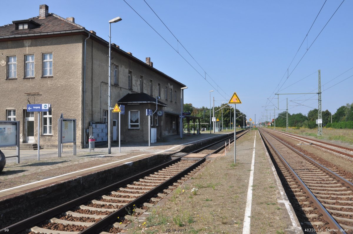 Lutherstadt Wittenberg | 201,93 | km 94,77 der Strecke Berlin Anhalter Bf -0,07 - Jüterbog 62,82 - Bitterfeld 131,64 - Halle (Saale) Hbf 161,65 |