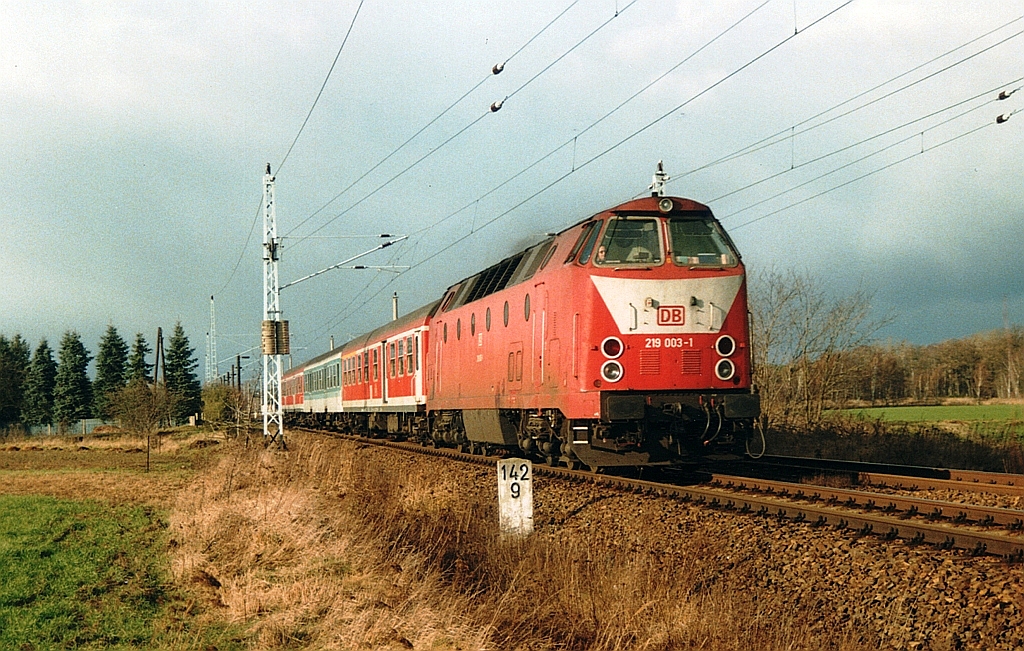 219 003 mit RB nach Görlitz am ehem. Hp. Beiersdorf - hier am km 142,9