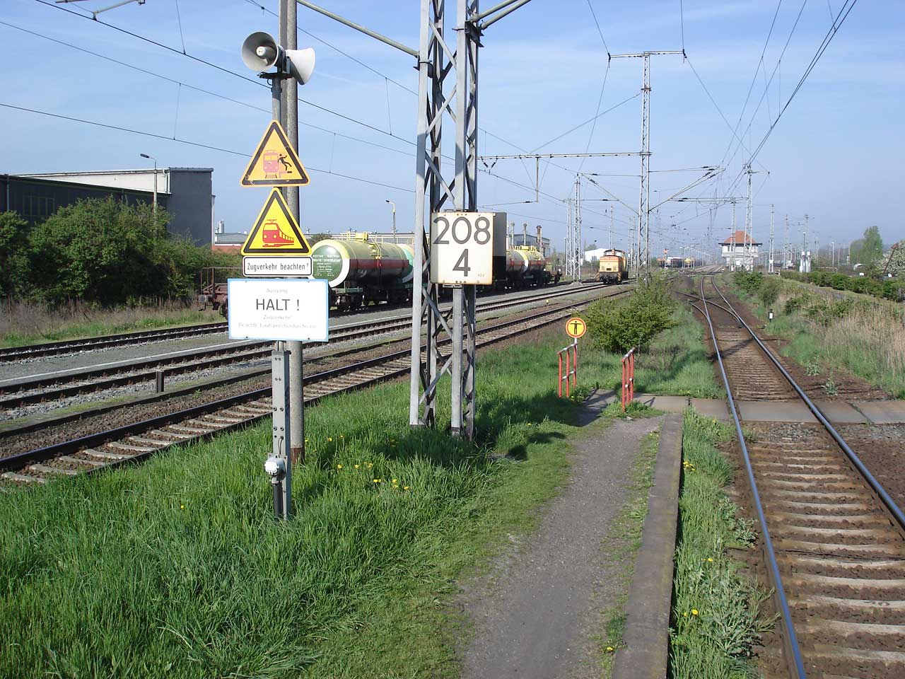 km 233,6 (rechts hinter dem Oberleitungsmast) in Roßlau (Elbe) - Detail